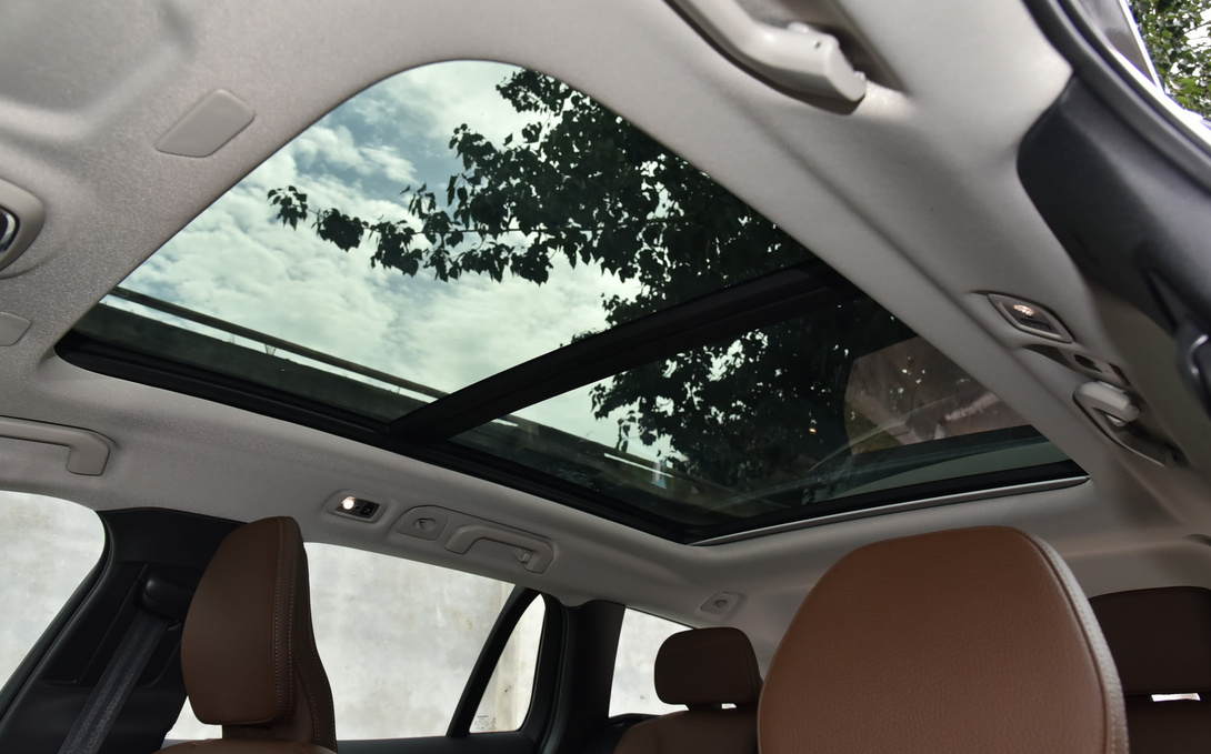 超大尺寸全景天窗采光好,车内通透不压抑,跑高速时可开启前半段换气。