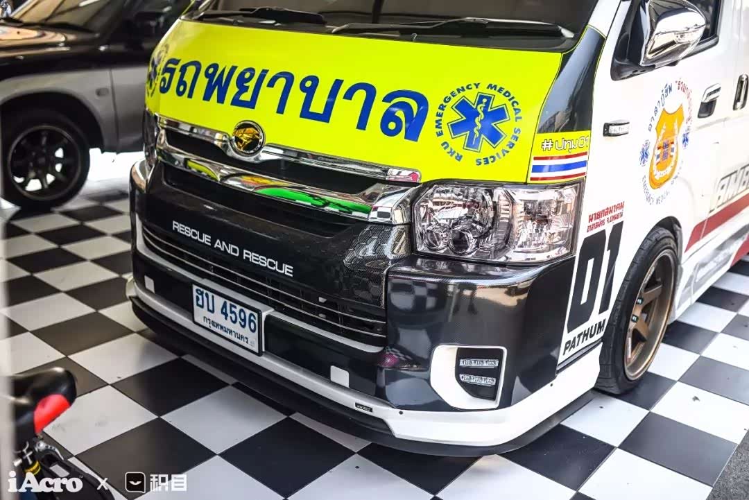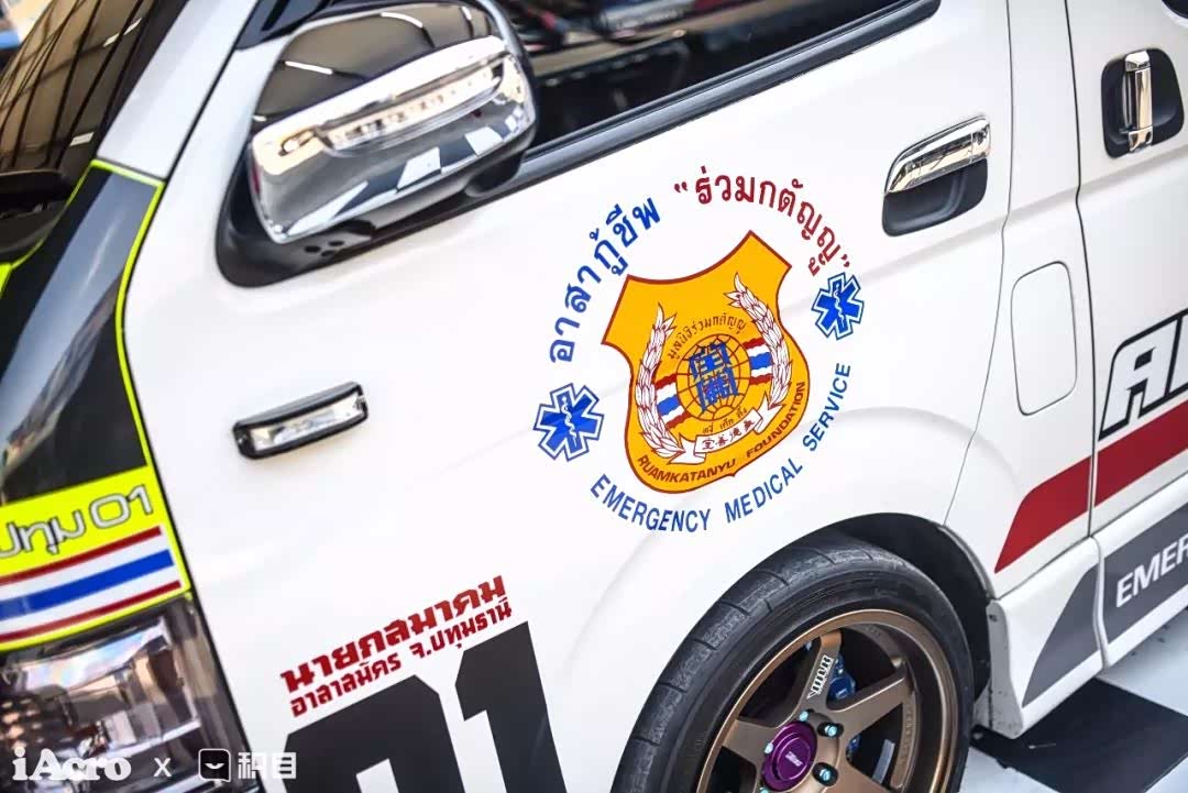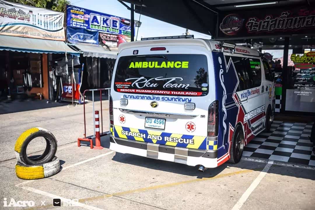 不要怀疑你的眼睛,这就是一台货真价实的救护车而非样子货。可能是哪位耐不住寂寞的司机趁着闲暇之余来这里给自己的工作伙伴继续做一些改动升级。如此造型的救护车在街上并不少见,避震与轮圈只是最基础的改装项目;设想一下这样一台救护车闪着警灯轰隆隆地快速超越自己的画面… 虽然很不真实,但这的确就是事实,这或许就是泰国人对改装理解的最好诠释