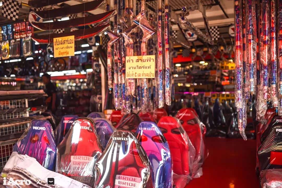 与其说是改装件市场,莫不如说这是一个以改装件为主的汽配城。各式各样的泰式特色改件眼花缭乱的悬挂在每家门头,其中还有几个规模不小的两冲摩托车部件专营店家。虽说整个汽配城中80%的部件都是泰国“本土生产”,但来这里找找乐子还是蛮不错的。但还是建议各位朋友选择有质量保障的正品部件,毕竟道路安全最重要