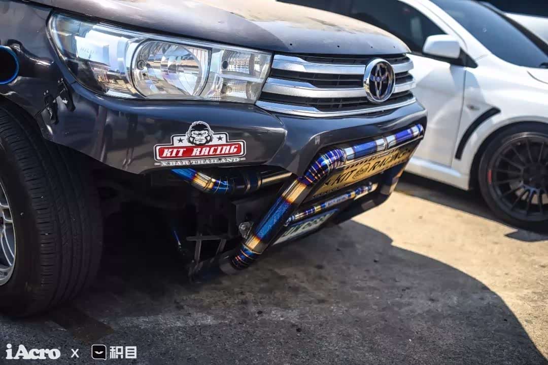 除了五十铃D-MAX,备受欢迎的还有丰田Hilux。这台八代Hilux的车斗已经被当地特色的超大货箱占据,装载能力瞬间提升几个级别。车头更是切割了原装前杠,安装了这只让人膛目结舌的“钛合金”竞技杠。冬菇头?不需要,直接在翼子板开洞延长管路,让空气不经阻拦直接畅快进入体内。整体尽显狂野性格,如果换一套胎纹更凶的轮胎的话就更没的说了