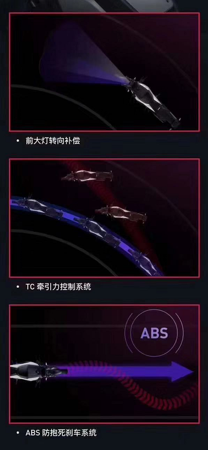 驾驶辅助系统包括了前大灯转向补偿、ABS 防抱死制动系统和 TC 牵引力控制系统。