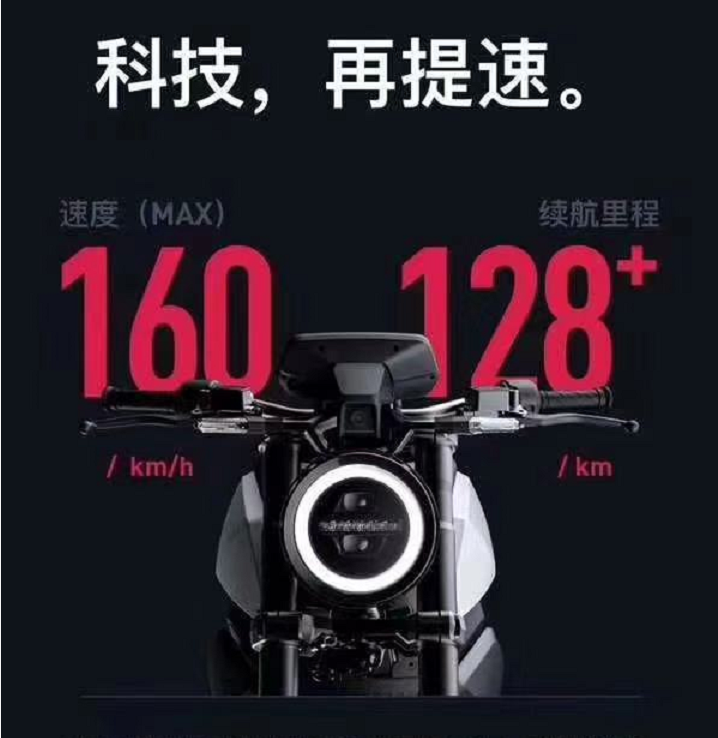 这款电动摩托车有着不错的数据,极速可达 160km/h, 续航里程达到 128km+。