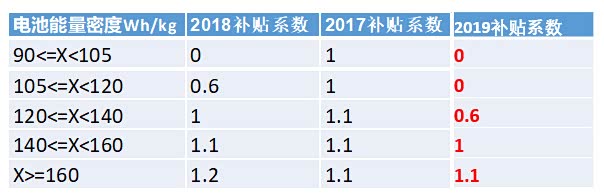 1. 如果能量密度为120Wh/kg以下,则补贴直接为0;