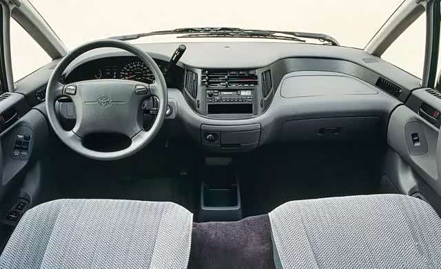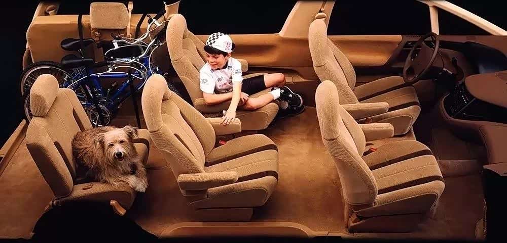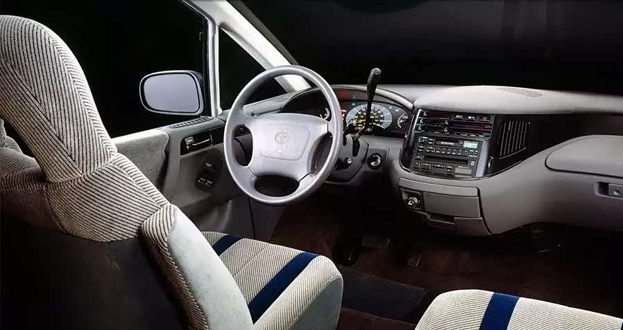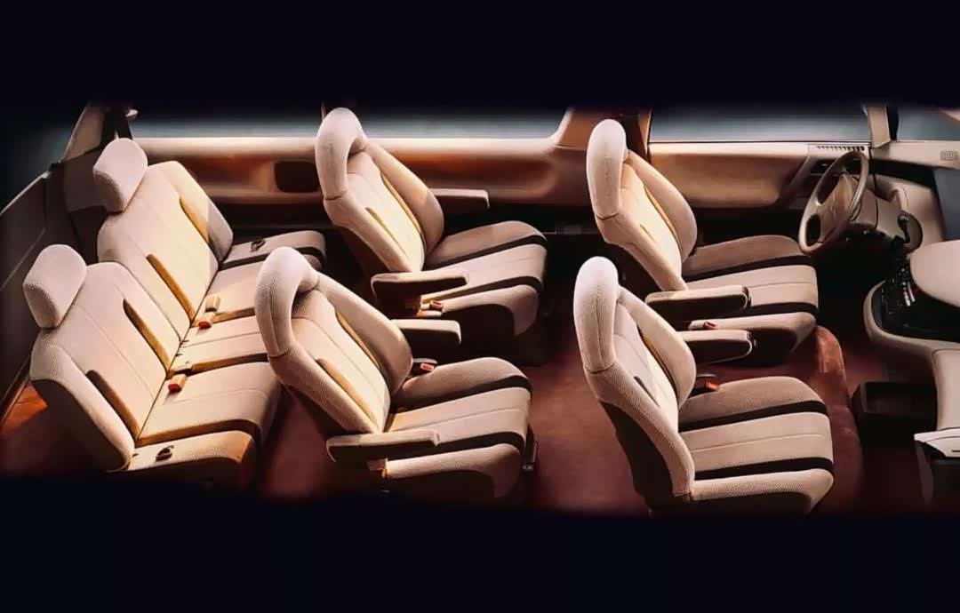 ▲初代普瑞维亚在不同市场总共提供三种座椅布局,包括7座和8座,其中2+2+3第二排独立座椅(船长椅)的布局车型,第二排座椅还可以旋转。绒布座椅如今也算是一种情怀了。