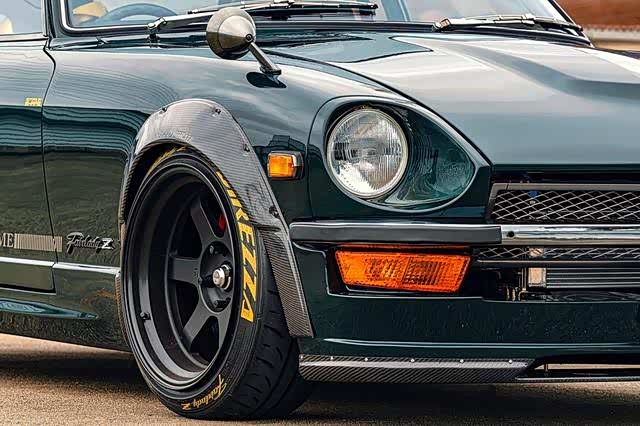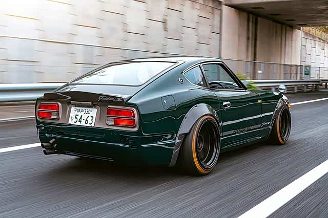 早期Fairlady 240Z,内部代号S30,但这款内部代号为S31。川内为它带来了莲花绿油漆涂装,并在轮眉等边角地方加入了碳纤维配件。同样,尾部加入的碳纤维尾翼堪称点睛之笔。