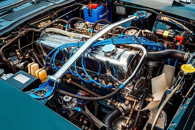 改动最大的地方便是动力系统,如果外观做得再漂亮,动力不升级,那一切都是白费力。根据川内的理念,动力要提升,但还要遵纪守法,不希望这辆车太肌肉。原厂L28 3.0L发动机,但关键部件进行了替换,例如使用了N42的缸盖,F54的缸体,Kameari的89mm活塞,Solex化油器,Fujitsubo全段排气以及71C变速箱等。