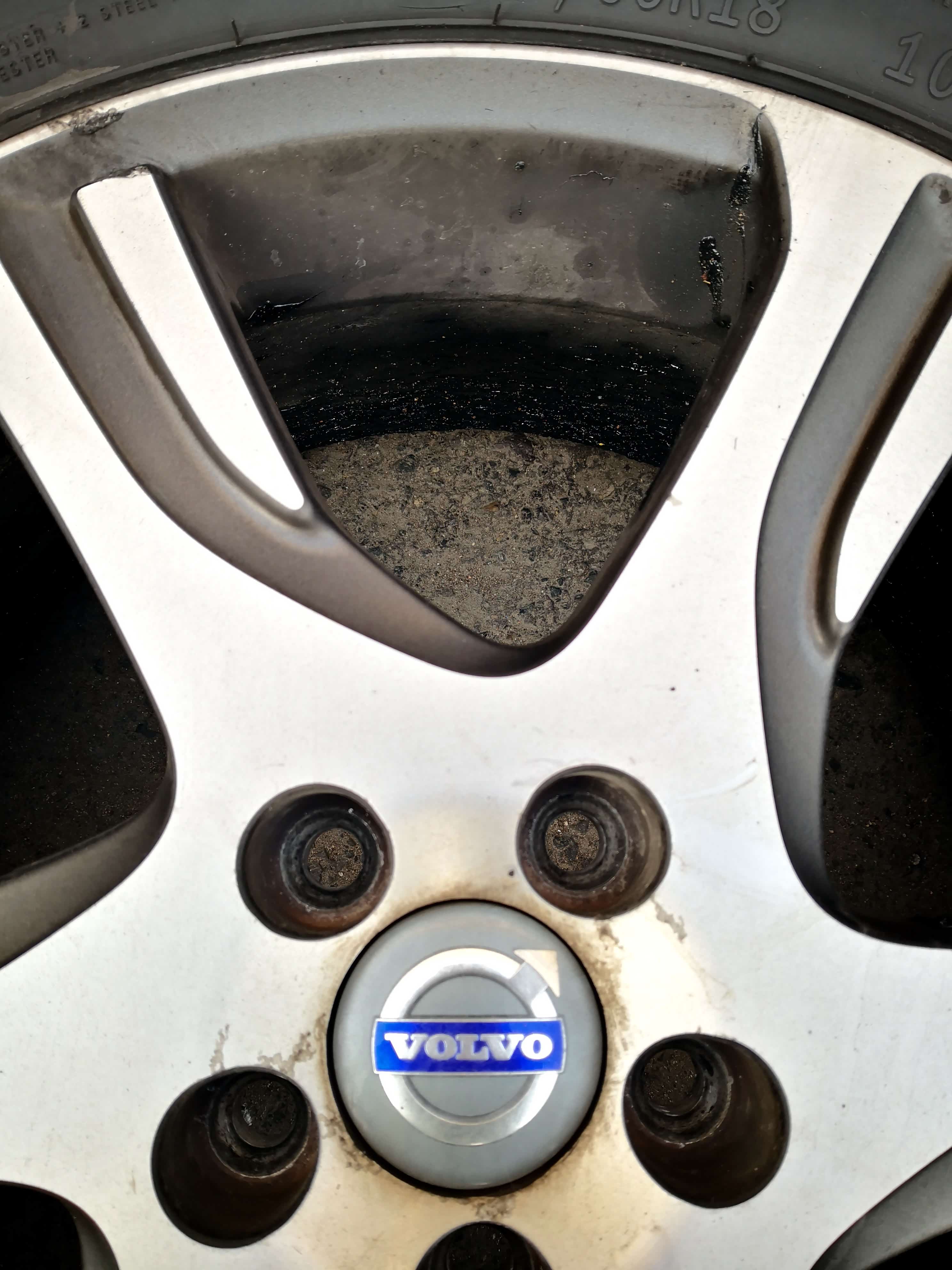 在几天前,这辆 XC60的行驶噪音增加明显,车主看到轮毂内壁上全是油脂,为了保险起见,就驱车前来做了检查,发现是球笼套破损了。
