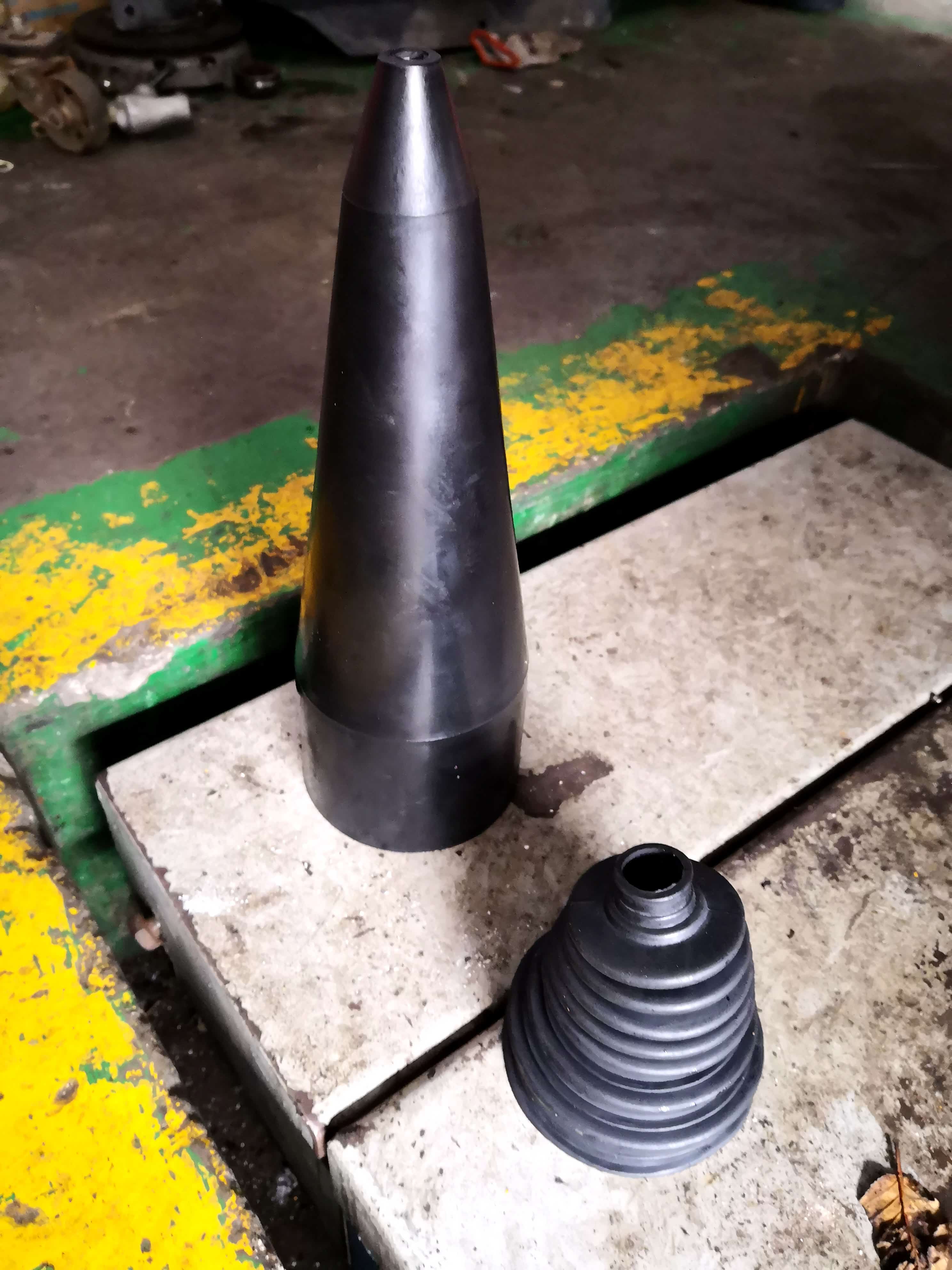 球笼套在安装前先放到热水中烫软,同时套筒涂上润滑油,利用热胀冷缩的原理迅速将球笼套套在球笼上。这样做的好处是可以节省拆下球笼的步骤。