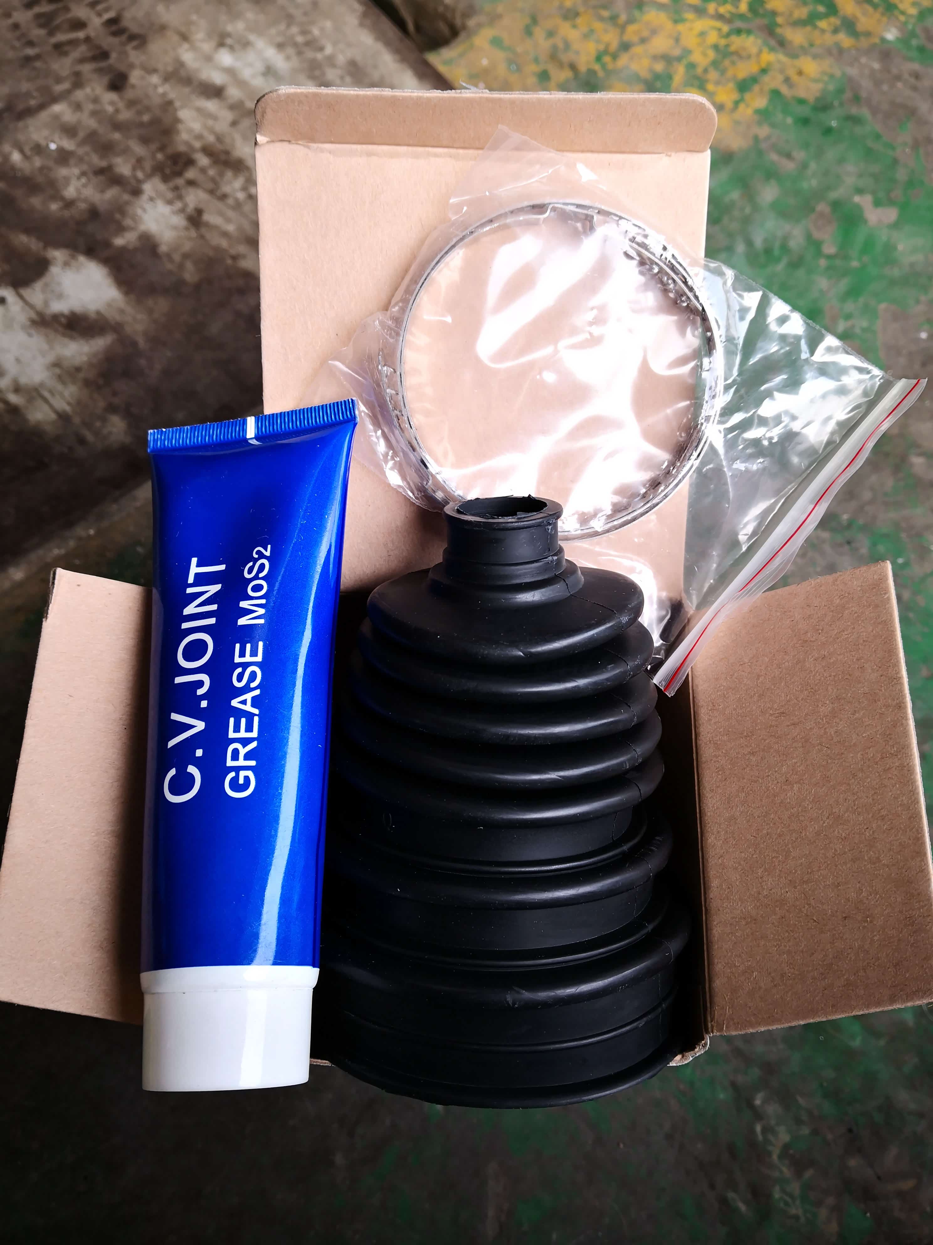 为了保证车主春节前正常出行,我们选择了适合XC60这款车使用的万用免拆型球笼修理包,里面包括球笼套、卡箍和润滑脂。和专车专用的球笼套相比,万用免拆型经济实惠,安装省时省力。万用免拆型安装时只需要使用专用的套筒,以及一盆热水即可。而专车专用的球笼套必须拆下外球笼进行安装。