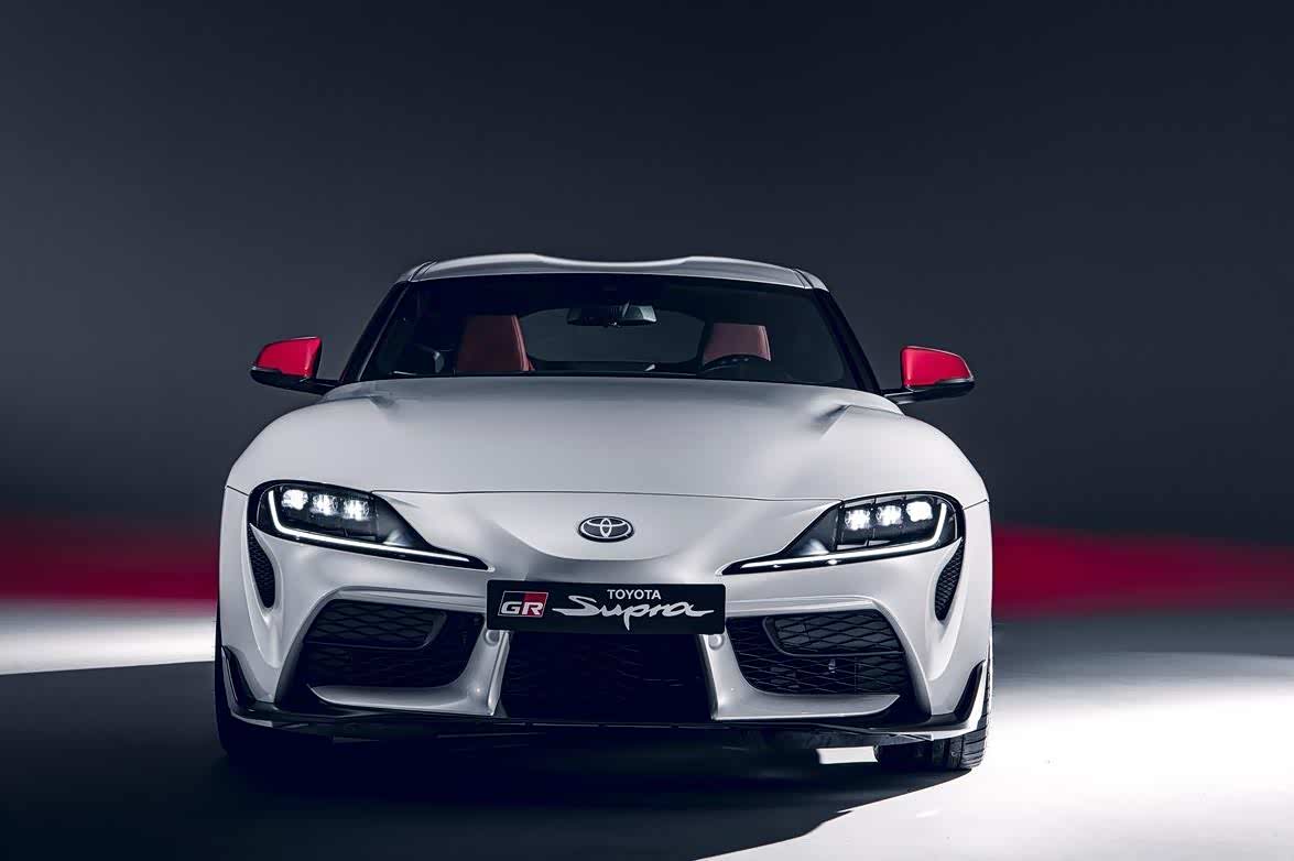 2020款丰田Supra 2.0L Turbo的外观设计方面,新车采用了独特的白色金属烤漆,车头正面有三个大吸气口和一组细长的LED大灯。