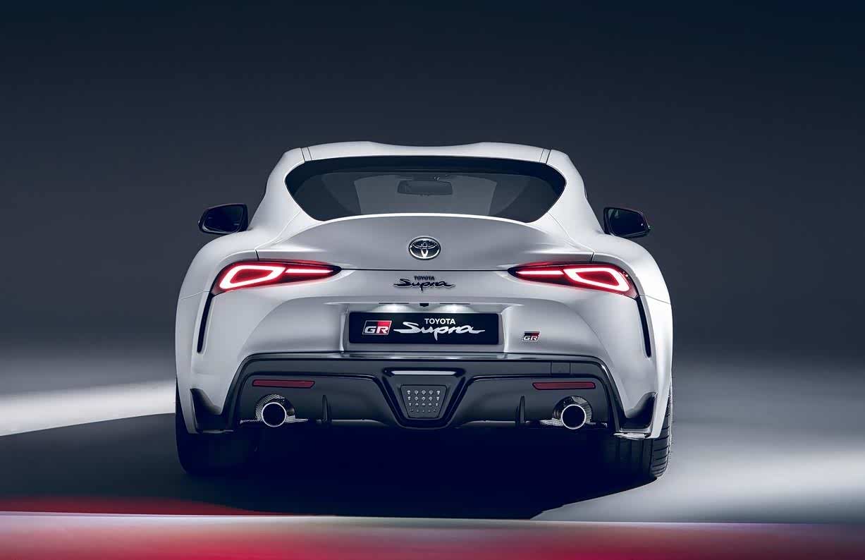新车排气采用双边单出布局,搭配非常有战斗感的大尺寸黑色尾唇。尾箱盖大幅度上翘,起到了与尾翼相当的效果,非常动感有型,这是GR Supra外观设计的点睛之笔。