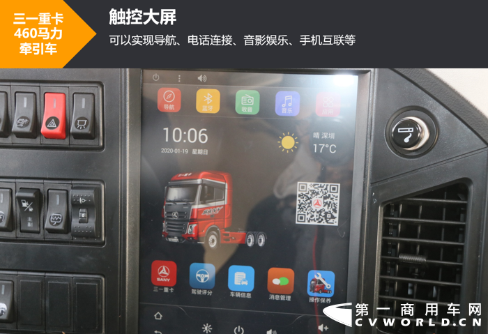 新车的12寸中控大屏可以实现导航、电话连接、音影娱乐、手机互联等。通过连接摄像头可以实现对车辆的实时监控;搭载的驾驶员评价和车辆信息以及车辆管理系统,不仅可以让驾驶员随时调整自己的驾驶习惯,还能够为车队管理人员提供车辆实时信息,方便他们的管控。