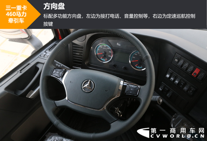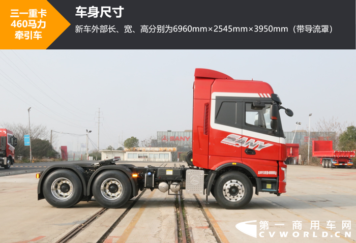 从谍照上看,这款车型不同于三一英杰版、军亮版两款主力车型,区别最大的就是前脸显眼的“460”数字。按照三一重卡的标识命名规则分析,这款车型很可能搭载的是康明斯X12 460马力发动机。