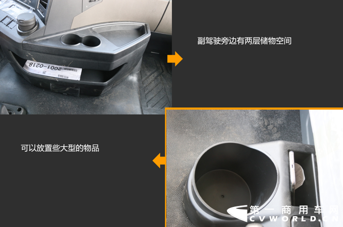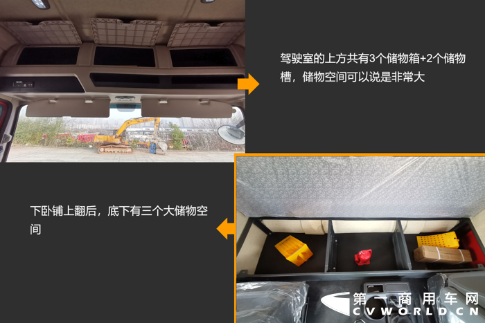 新车驾驶室的上方共有3个储物箱和2个储物槽,卧铺下方也有3个大型的储物空间,还有大大小小十几处储物点,可以说空间是非常大,对于常年奔波在路上的用户来说,可以提高他们的生活质量。