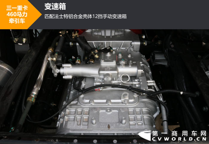 动力方面,新车搭载了康明斯X12发动机,排量12L,最大输出功率331kW(460马力),在1000-1400rpm转速下可输出2300N·m最大扭矩;匹配法士特铝合金壳体12挡手动变速箱。