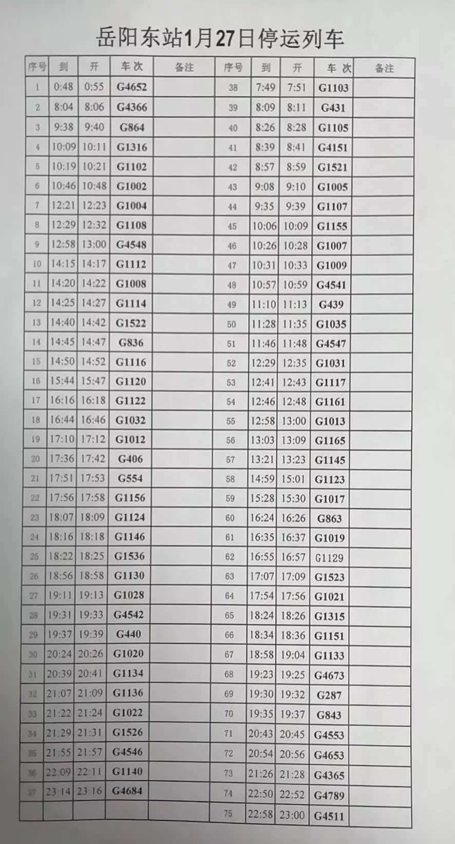 刚刚获悉,为了做好新型冠状病毒感染的肺炎防控工作,1月27日起,岳阳东站部分终到、经停武汉列车停运。已购买停运列车车票的旅客,可在30日内在12306网站或全国任意车站办理退票手续,免收手续费。