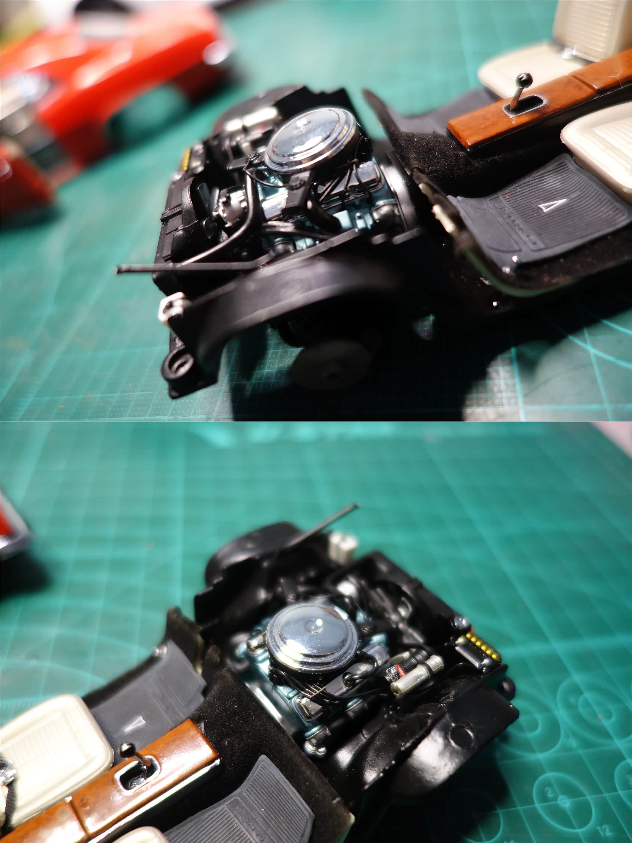 这台严重瑕疵的 1:24 比例 1969 Pontiac Firebird 400 汽车模型来路不明(但价格低廉),从组配完成度推测应是被淘汰的瑕疵不良品,在没有进行下一步工序之前就通过某种渠道流向市场了。不过,除了没有四只车轮、模型车身漆面严重起疹外,模型的其他部分完成度基本接近成品状态,我们也能从它身上体会到 1:24 的魅力!