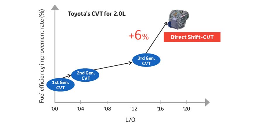 由于CVT变速箱在日本有很高的市占率,丰田集团一直持续投资CVT变速箱的研发。从2000年至今丰田CVT变速箱已经迭代至第四代。其中燃油经济性则是演进的重要指标,最新的丰田direct shift CVT较上一代CVT变速箱节油超过6%。那么是什么秘诀帮助丰田在不断更新CVT变速箱的过程中保持燃油经济性的优化呢?我们来看看其中的秘密。