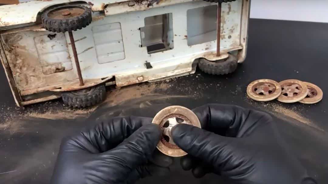 经过岁月的洗礼,这台铁皮玩具卡车周身布满锈迹,虽然这样看上去也十分带感,但 Rescue & Restore 的修复过程更加过瘾!