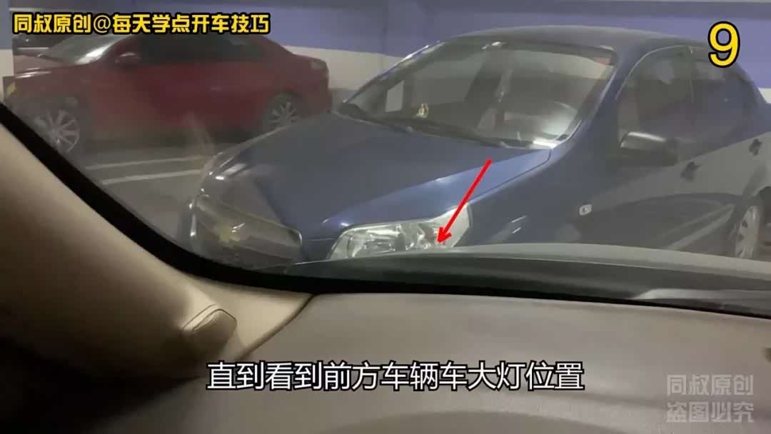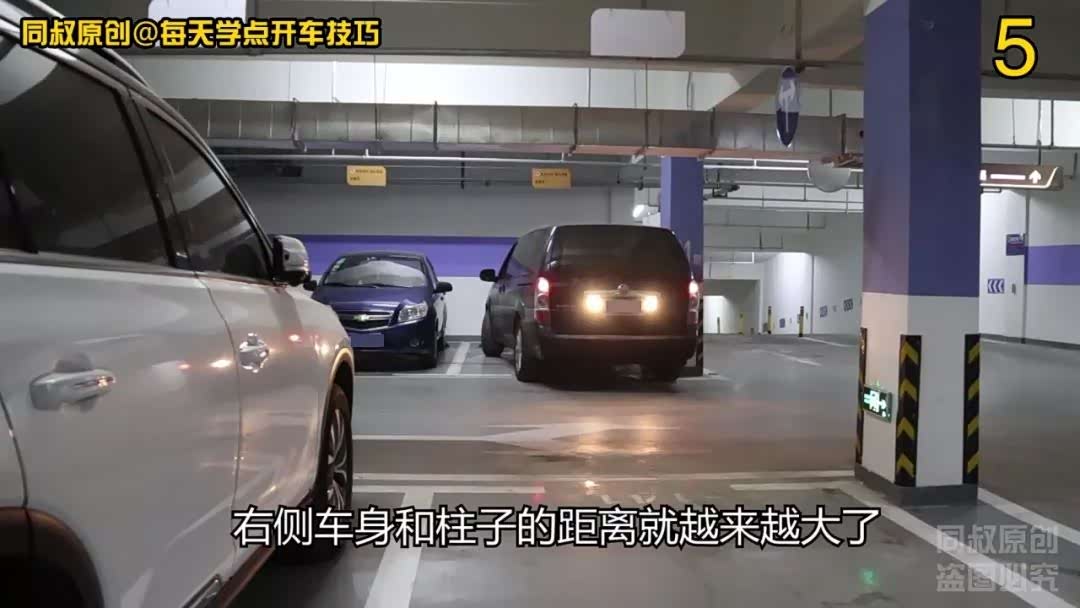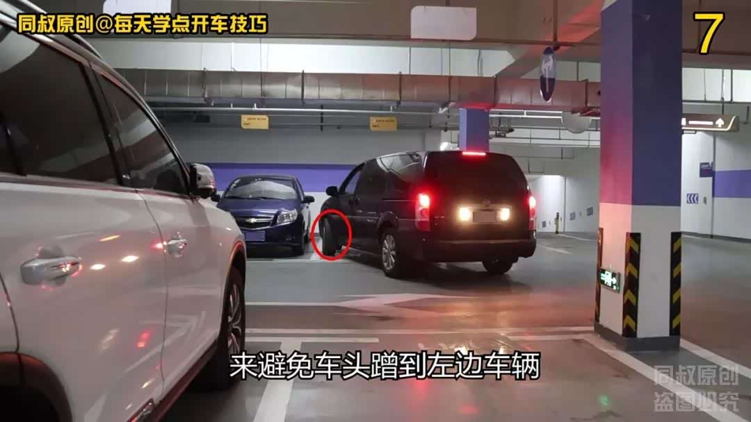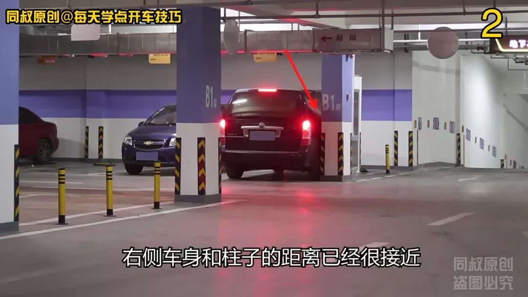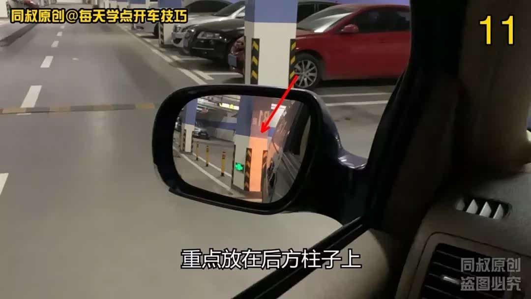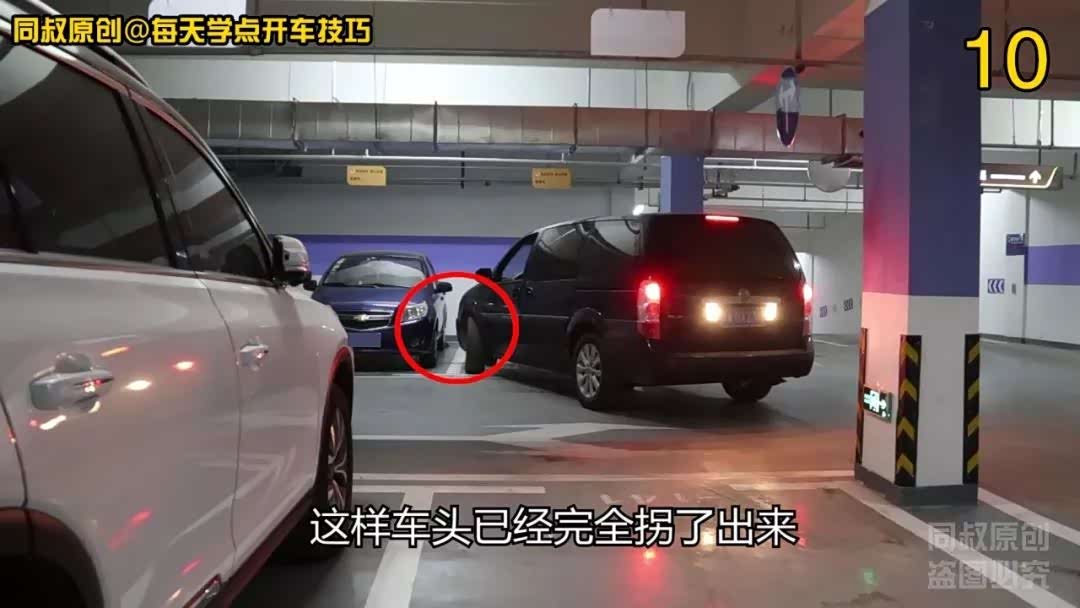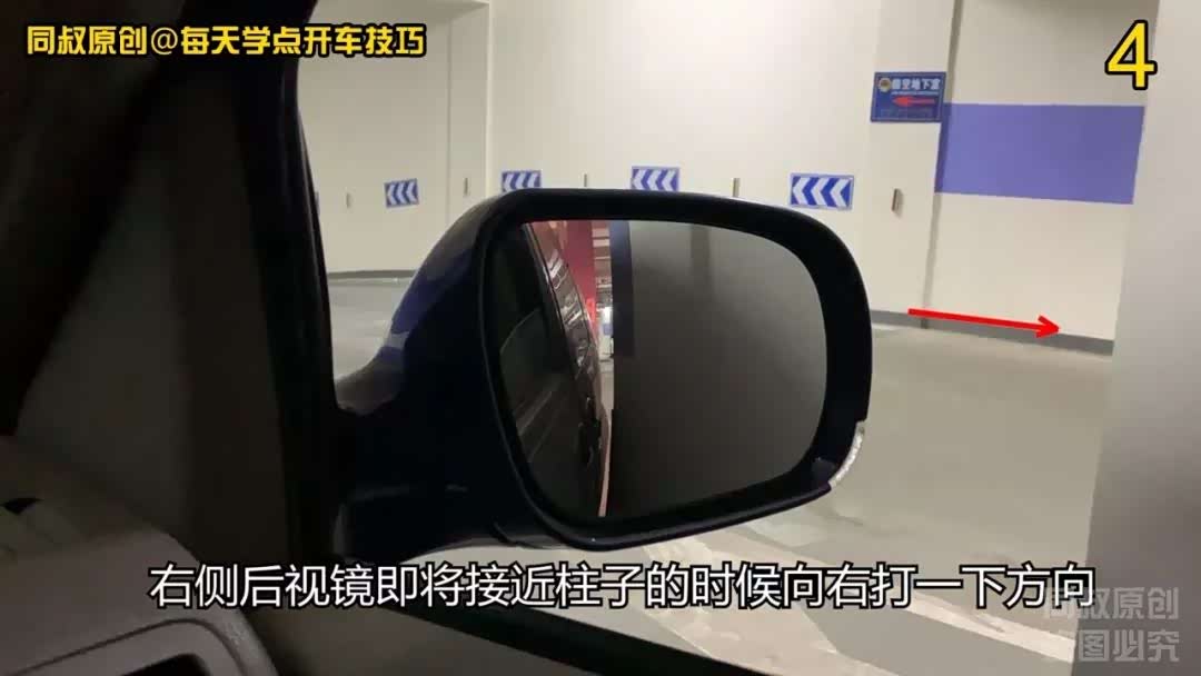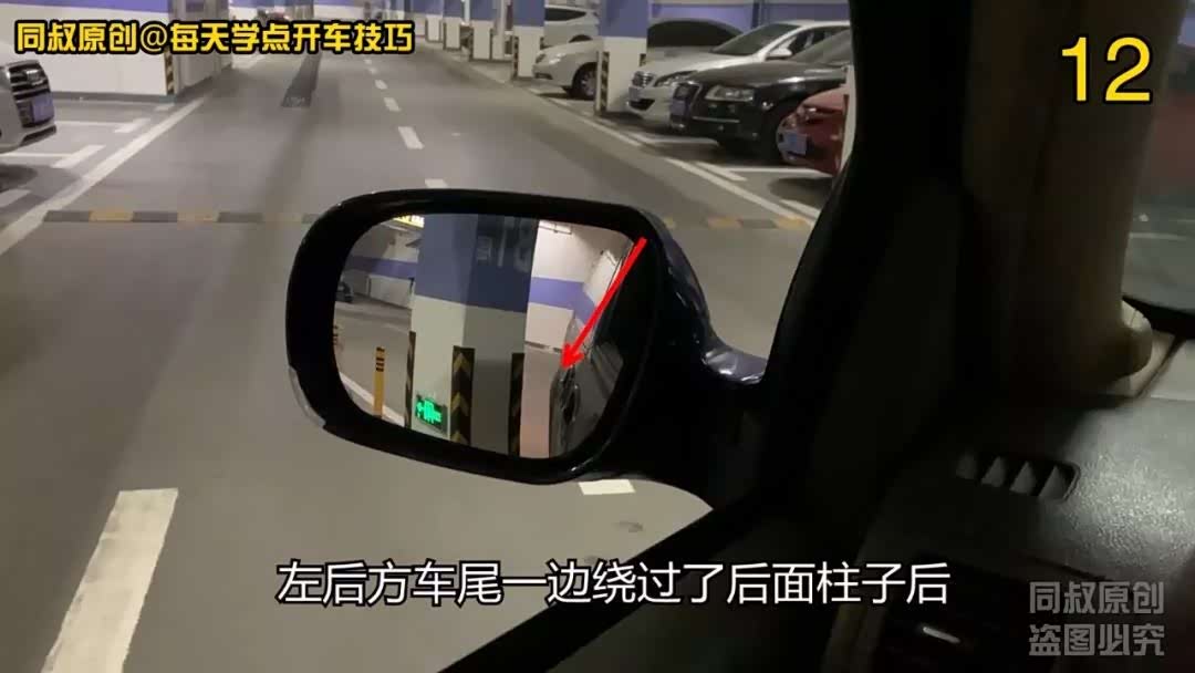 让后视镜外侧也是紧贴着柱子倒出来,当后视镜过来以后,右侧车身和柱子的距离就越来越大了。