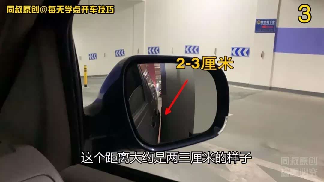 再从右侧后视镜中看一下会更清晰,这个距离大约是两三厘米的样子,