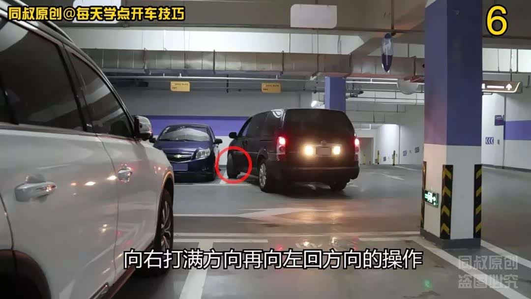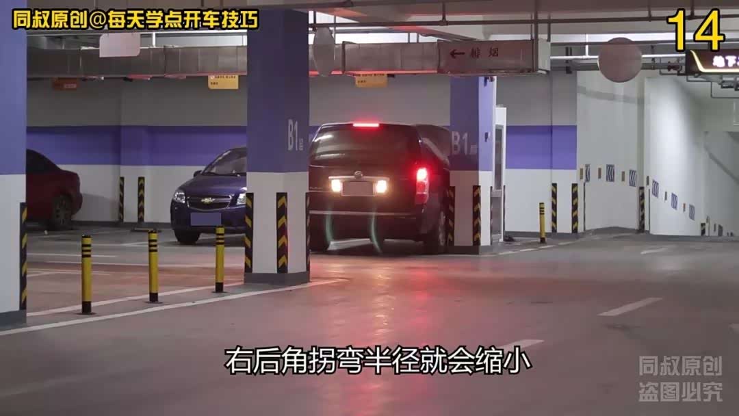 从正后方也会清晰的看到在倒车过程中仍然是采用向右打满方向再向左回方向的操作,