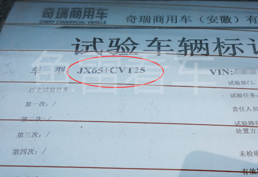 再来看看试验车辆标识信息,出现了JX65+CVT25的字样,这个信息含量就相当巨大了,之前拍摄的谍照中出现了JX61和JX62的项目编号,JX61现在知道是捷途X70M的项目编号,而JX62这个项目编号还处于一头雾水之中,只知道平台数据采集车也是借助捷途X70而做,但是轴距拉长了大约4厘米,宽度增加(主要是轮距向外凸出),可能是捷途一款定位在X70与X90之间的一款高端SUV车型(当然不会叫X80,根据前期掌握的信息有一个捷途X70G的车型存在),现在直接跨过JX62蹦出个JX65项目编号,确实有点如坠迷雾,不过结合五座的定位来分析,很有可能就是捷途X概念车的量产版项目编号。
