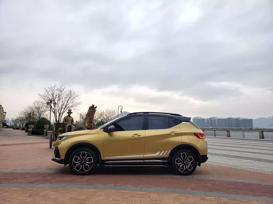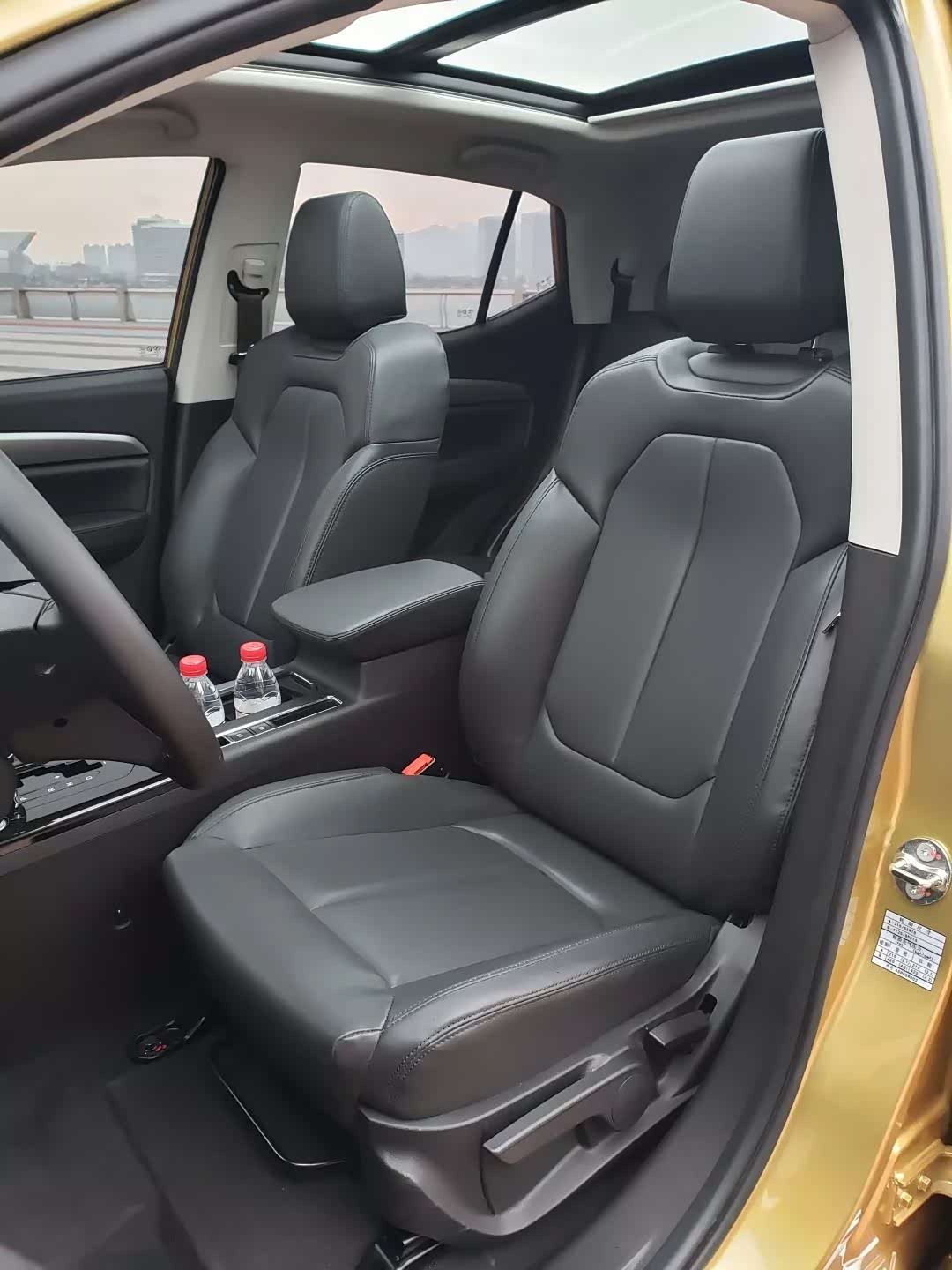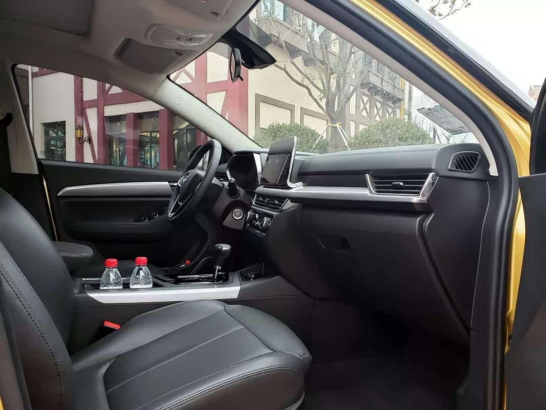 从整车配色来说我是最喜欢的是蓝(车身)白(顶)混搭的颜色,看过去挺有高档质感的。然后我们被分配到的试驾车是有点香槟色拼黑色的,看过去就老沉不少。哈哈。