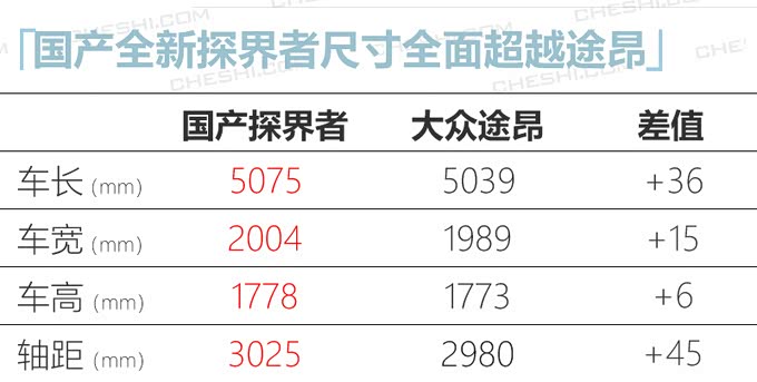 长安福特国产探险者目前已申报,新车为全新一代车型,基于CD6平台打造,外观沿用海外版车型设计,根据车型配置的不同提供多种样式前格栅及轮毂。新车长宽高分别为5075×2004(2020)×1778mm,轴距为3025mm,相较现款车型轴距加长165mm,提供了更为舒适的后排乘坐空间。同时尺寸全面超越合资中大型SUV的“扛把子”大众途昂。