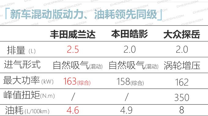 动力搭载2.0L自然吸气发动机以及2.5L双擎混合动力系统,其中2.5L双擎版还提供增加后桥驱动电机的E-Four车型,传动系统方面,燃油版车型匹配可模拟10速换挡的CVT变速箱,混动车型匹配E-CVT变速箱。丰田坚持使用自然吸气发动机,保证了日常驾驶的平顺性,混动车型则将燃油经济性发挥到极致,让主打家用市场的威兰达受众群体更加全面。凭借着TNGA架构优势以及RAV4荣放的口碑,让威兰达上市后的市场表现十分令人期待。
