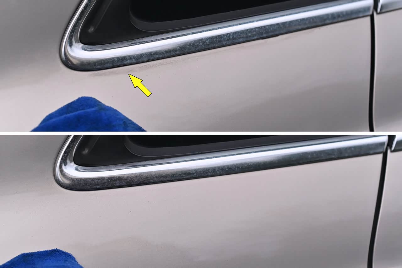 这是前任车主上一次打蜡的残留,收进来的私家车,有规律打蜡习惯的并不多,看来平时养车还是比较上心的。