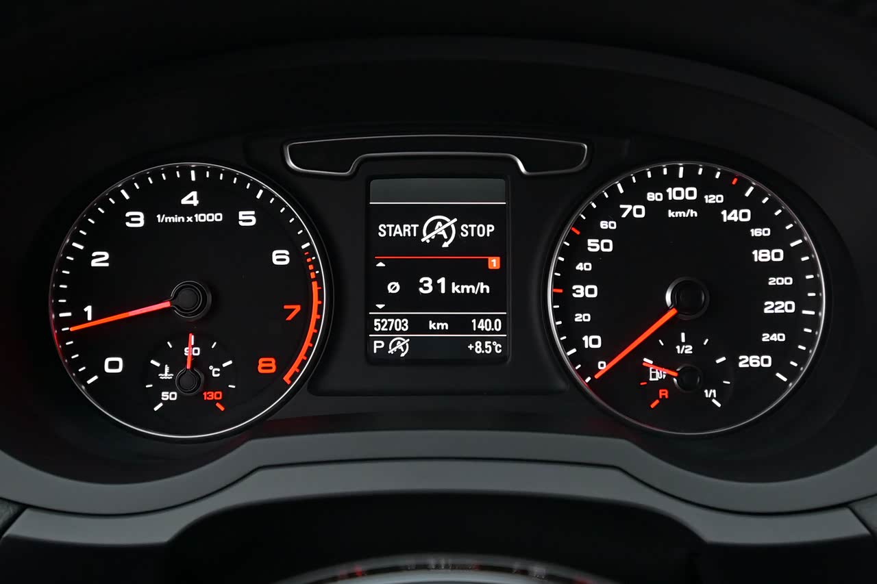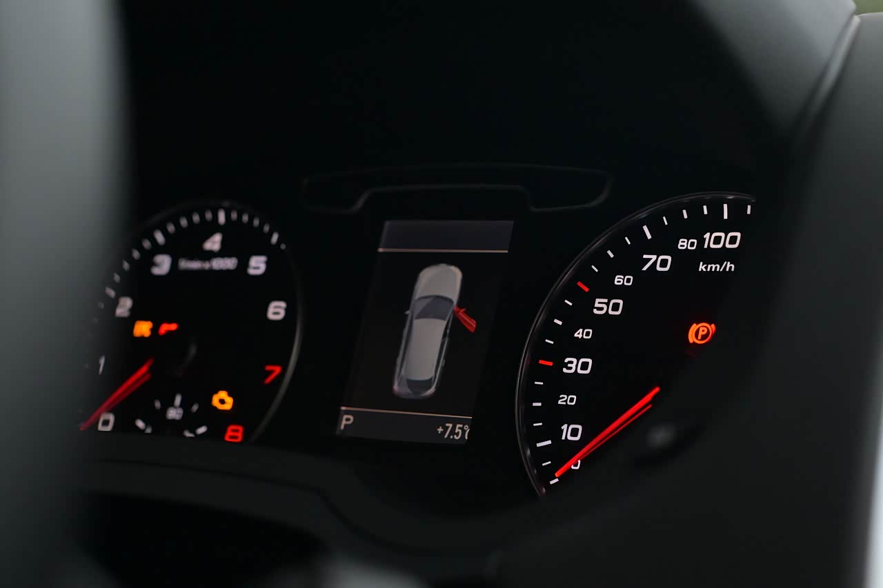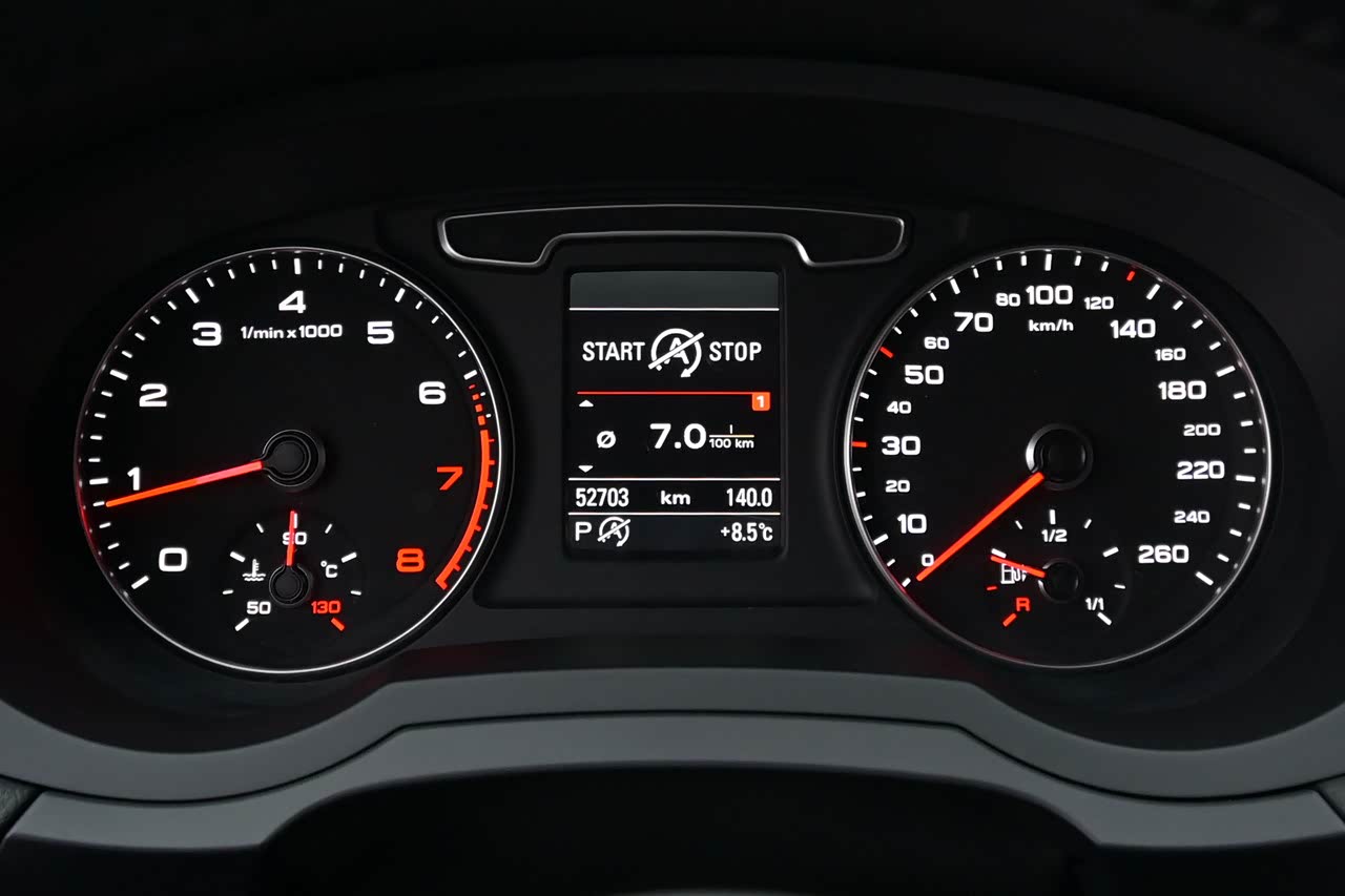 看看这台香槟金的Q3,也属于品相一流的准新车况,不过剩余续航只有10km了,红针已到最低位,该加油了。