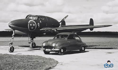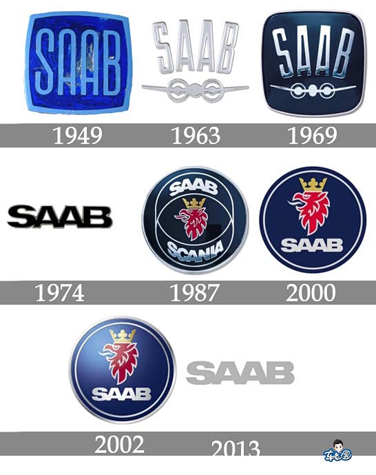 SAAB(萨博)全称为Svenska Aeroplan Aktie Bolaget(瑞典飞机有限公司)。生产军用飞机出身的萨博,在二战结束后,市场急剧萎缩。经过对市场形势的分析,1944年萨博公司决定在原有的飞机生产线基础上,经过改造,开始生产汽车。萨博标志戴着皇冠中的鹰狮形象,在瑞典的神话中象征着警觉和灵敏,与萨博对安全性和动力性的极致追求相呼应。