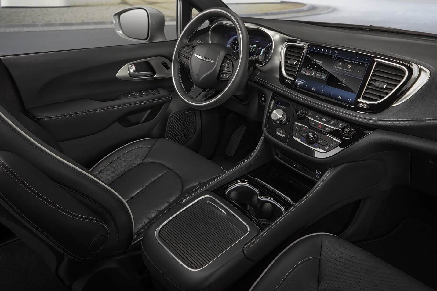 在车内,可以尽情享受全新的Uconnect 5多媒体设备,此设备采用了10.1英寸触摸屏(比上一代大20%)。 新设备与Amazon Alexa,Apple CarPlay和Android Auto兼容。 另外,它可以托管多达六个驱动程序配置文件,包括代泊模式。 此外,还可以通过蓝牙同时连接两部手机。在动力总成方面,Pacifica配备3.6升V-6发动机,输出功率为287马力,扭矩为355.22N-m,也可以采用插电式混合动力,其中V-6与e-motor的总系统输出为260马力。