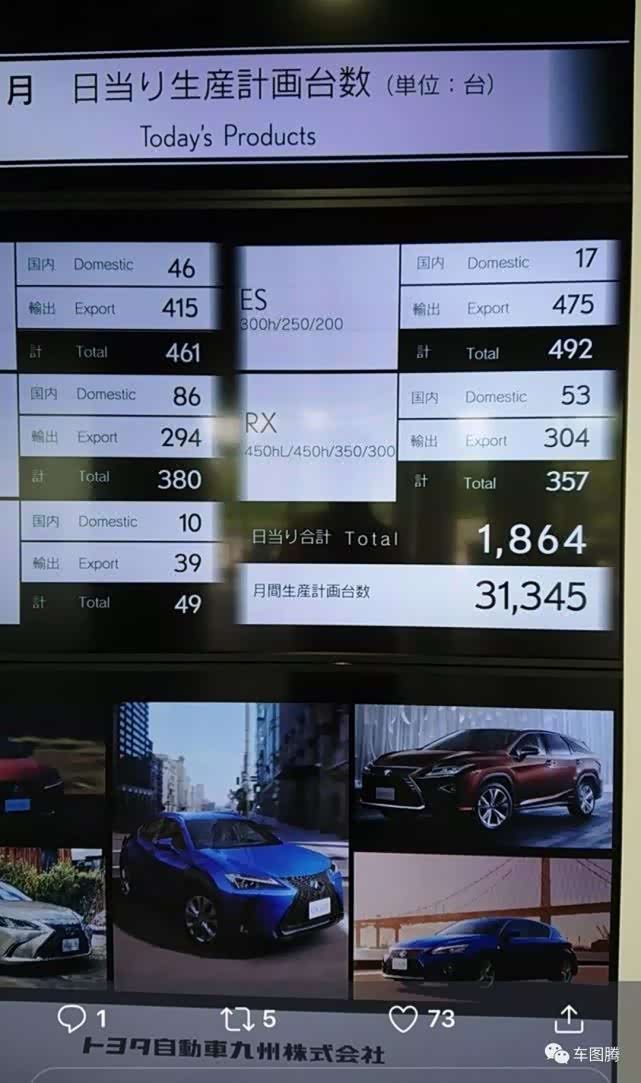 相关消息显示,作为雷克萨斯的主力生产基地,目前九州宫田工厂新车产能可达到每日1800多辆,单月规划产能31000多辆,年产能43万辆。
