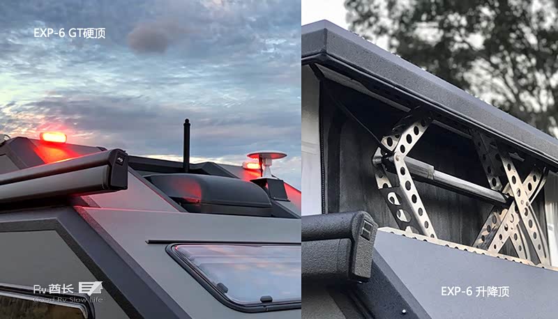 代替了标准EXP-6上的弹出式车顶后,布鲁德(Bruder)将该系列的旗舰产品加冕为GT。全新的硬顶设计可以更好的隔绝外部环境,让车内使用更加舒适。车头带有双人床位置的天窗,让睡眠区也有一个真实环境的星空顶。