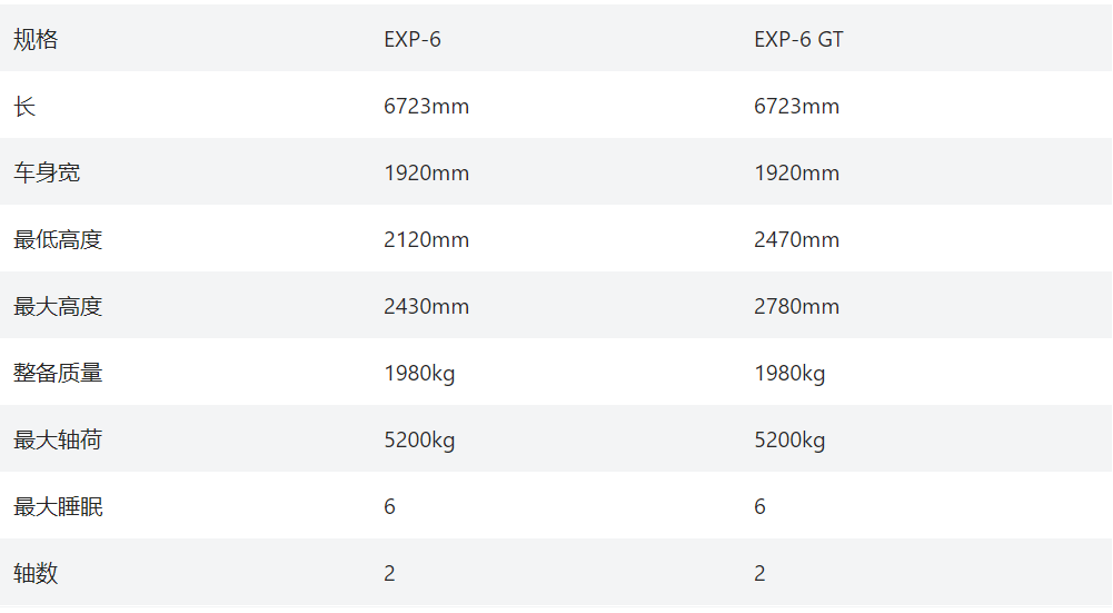 EXP-6 GT基本参数