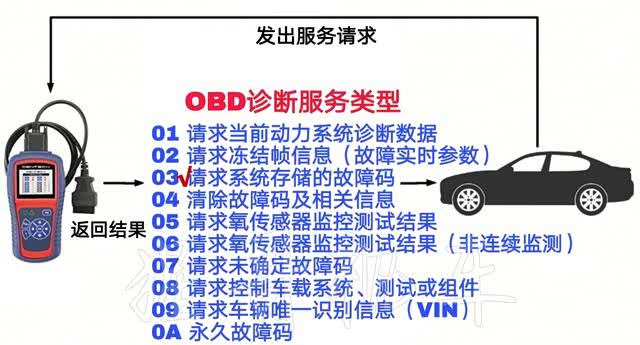 言归正传,我们以代码03(显示故障码服务)为例,来观察ODB系统是如何工作的。