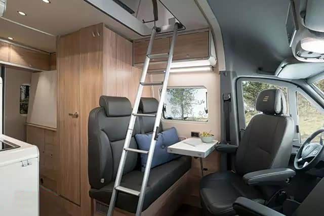 在第二排座椅的上方升顶床铺的开口,配有一个爬梯。由于车身比较高,如果不借助爬梯很难爬进升顶的床铺。