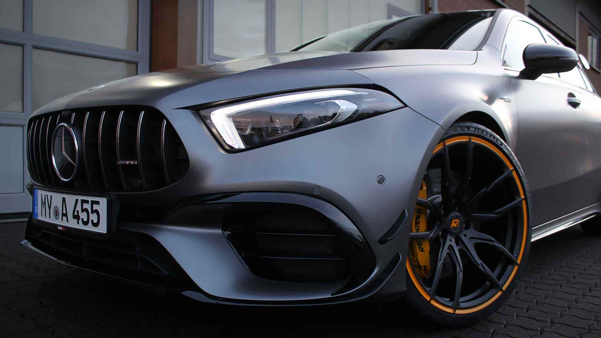最新一代的 Mercedes-AMG A45 搭载了量产2.0L四缸的涡轮增压发动机,最高可输出416 Hp的马力,峰值扭矩更是达到了500 Nm。不过来自美国的改装厂商 Renntech 对这个数据似乎不是很满意,于是自己动手改装将马力提升至了592Hp!