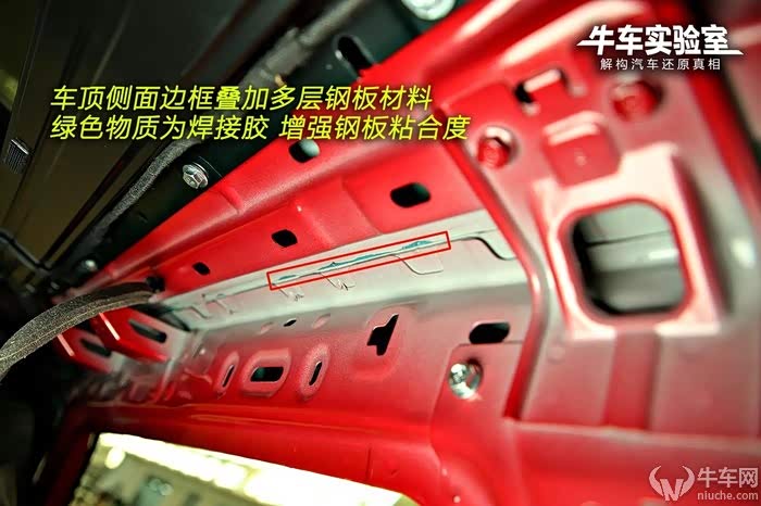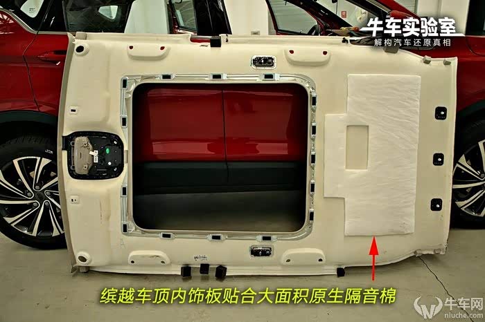 总体来说,德系车这次恐怕是要吃亏了,虽然复合硬纸板也并不算廉价货,但是确实缺少了金属加强结构。智跑也是缺乏加强筋的配置,而轩逸3道加强筋听上去很强悍,实则非常单薄。自主产品缤越虽然是全景天窗,也没有加强框,不过3位对手也没有。但是缤越的结构非常完整,加强筋止震贴隔音棉样样齐全,孰是孰非一目了然。