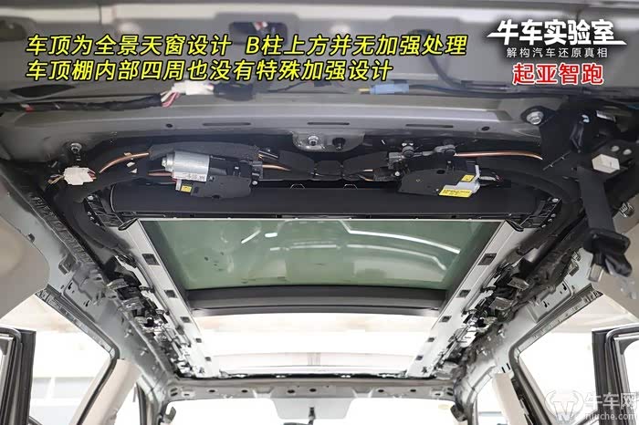 东风悦达起亚智跑,全景天窗,四周无加强,D柱上方加强筋。