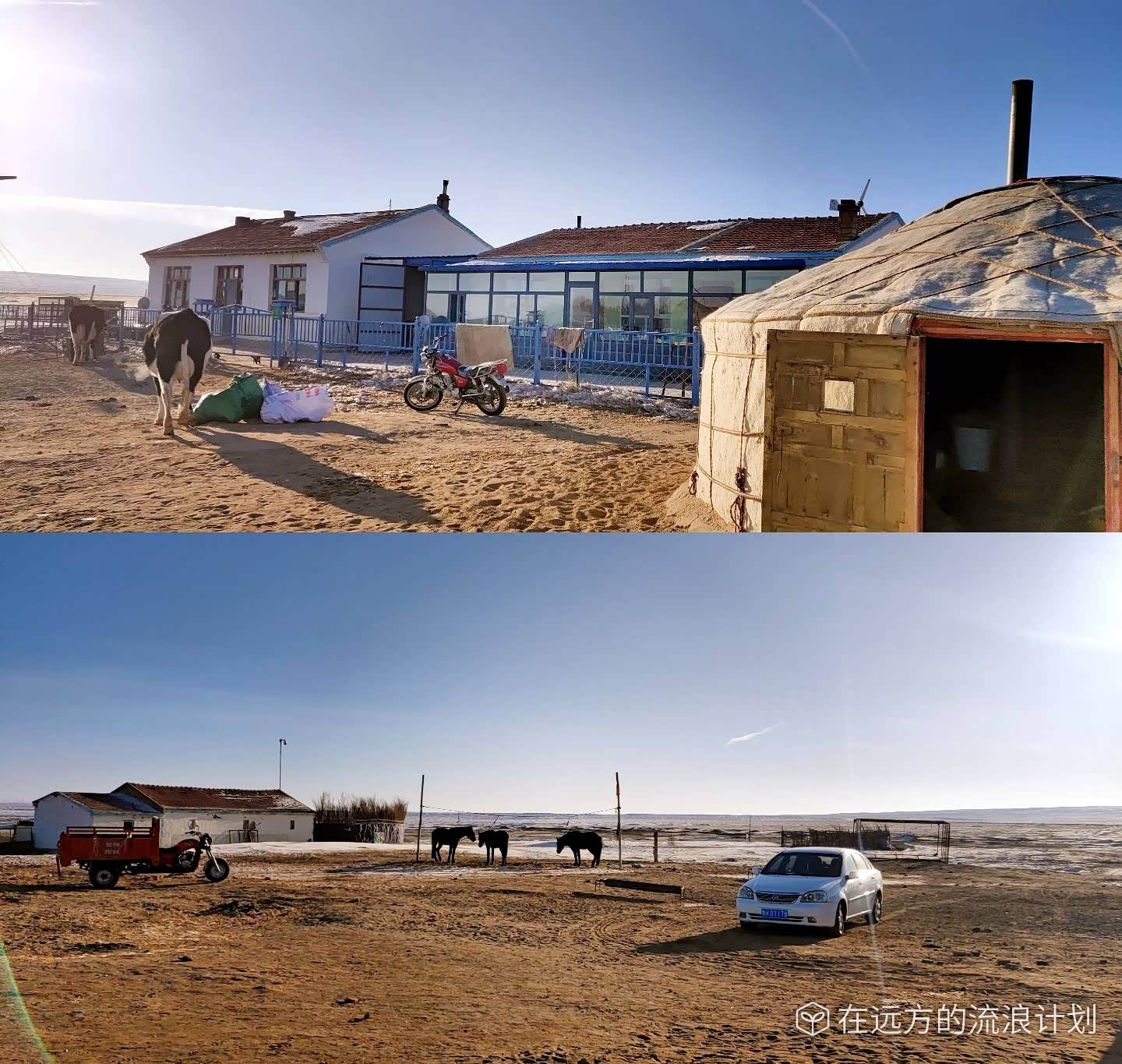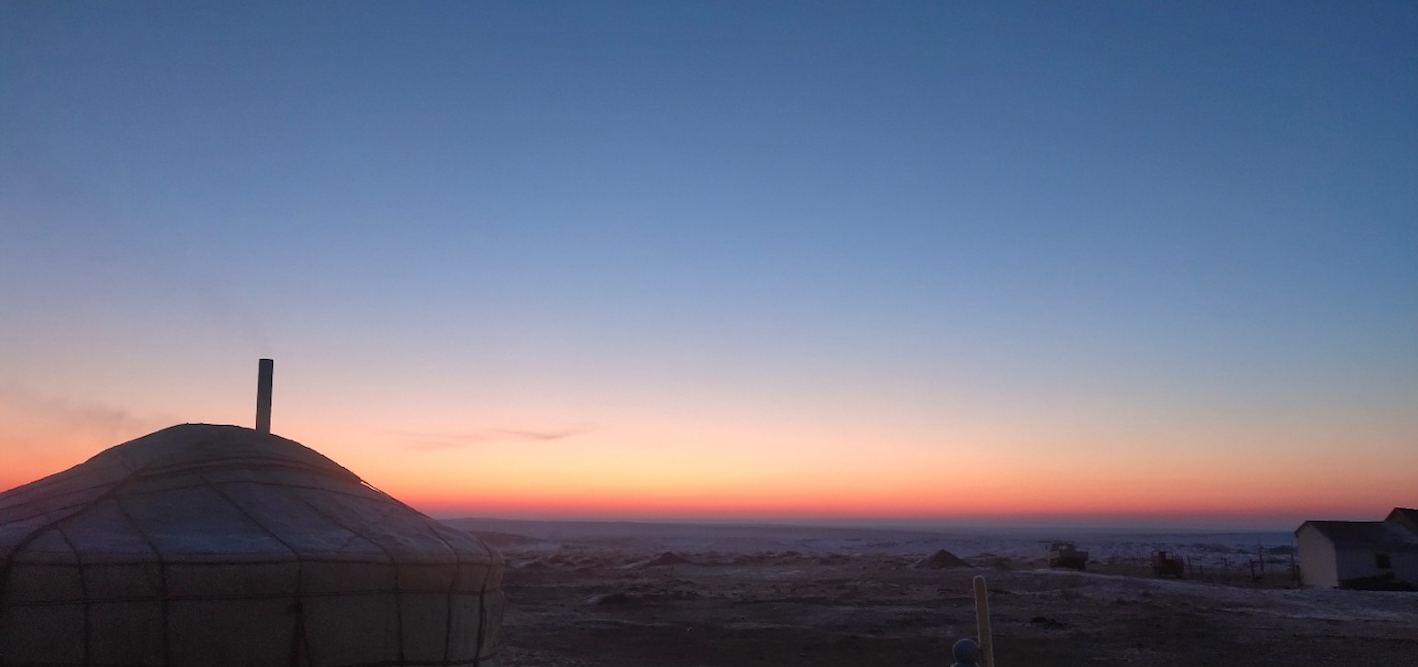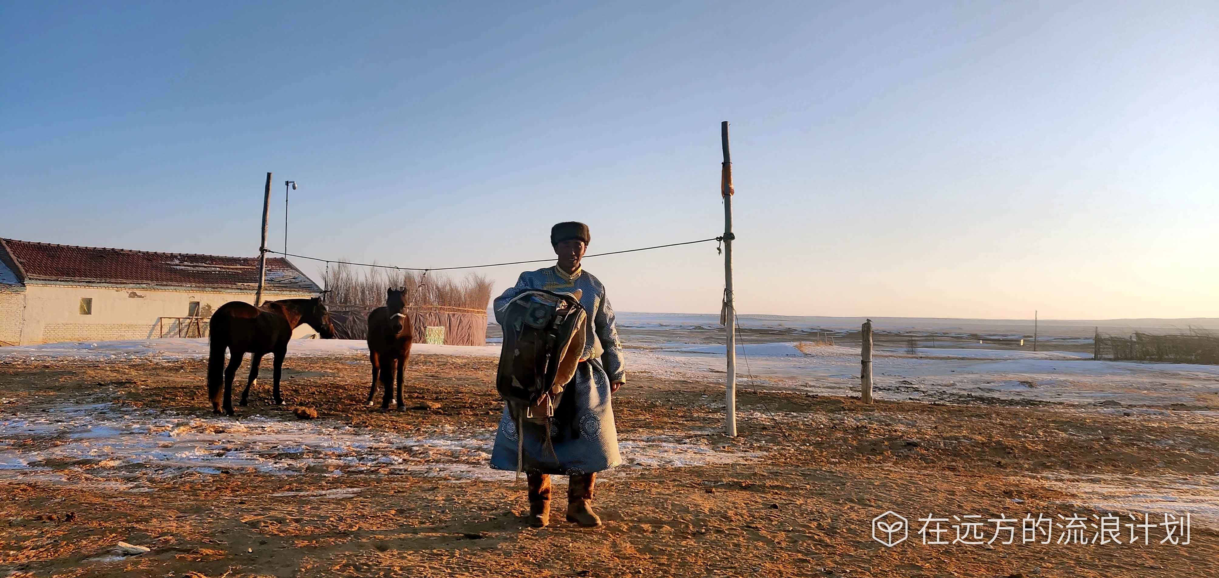 “(大年初一)早上五点起来给额吉阿爸拜年,敬酒......和家里人喝过新年茶后出门看到了新年的第一缕阳光”