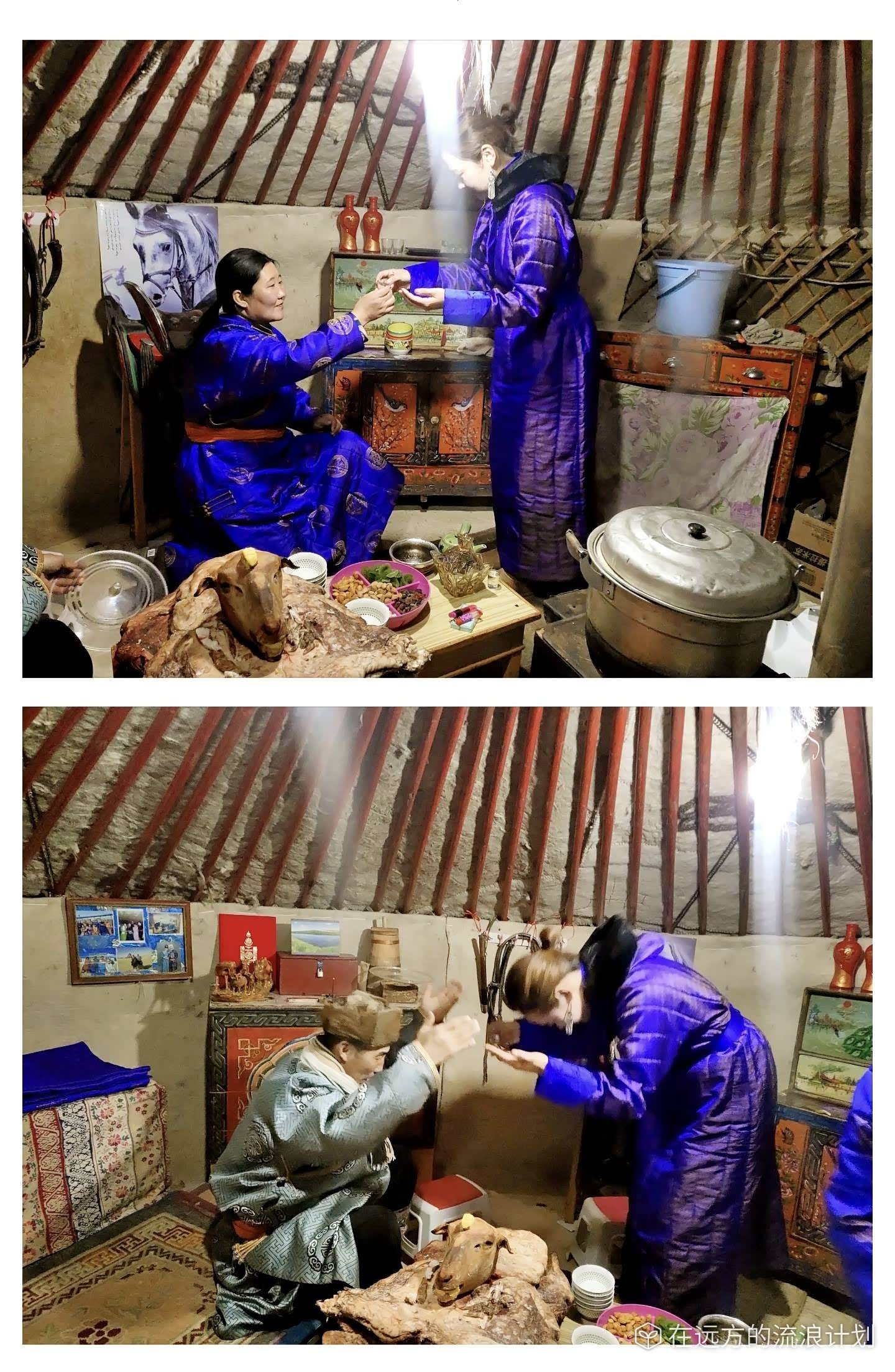 煮手把肉,喝奶茶,打扫蒙古包,穿上新蒙古袍迎接客人......"