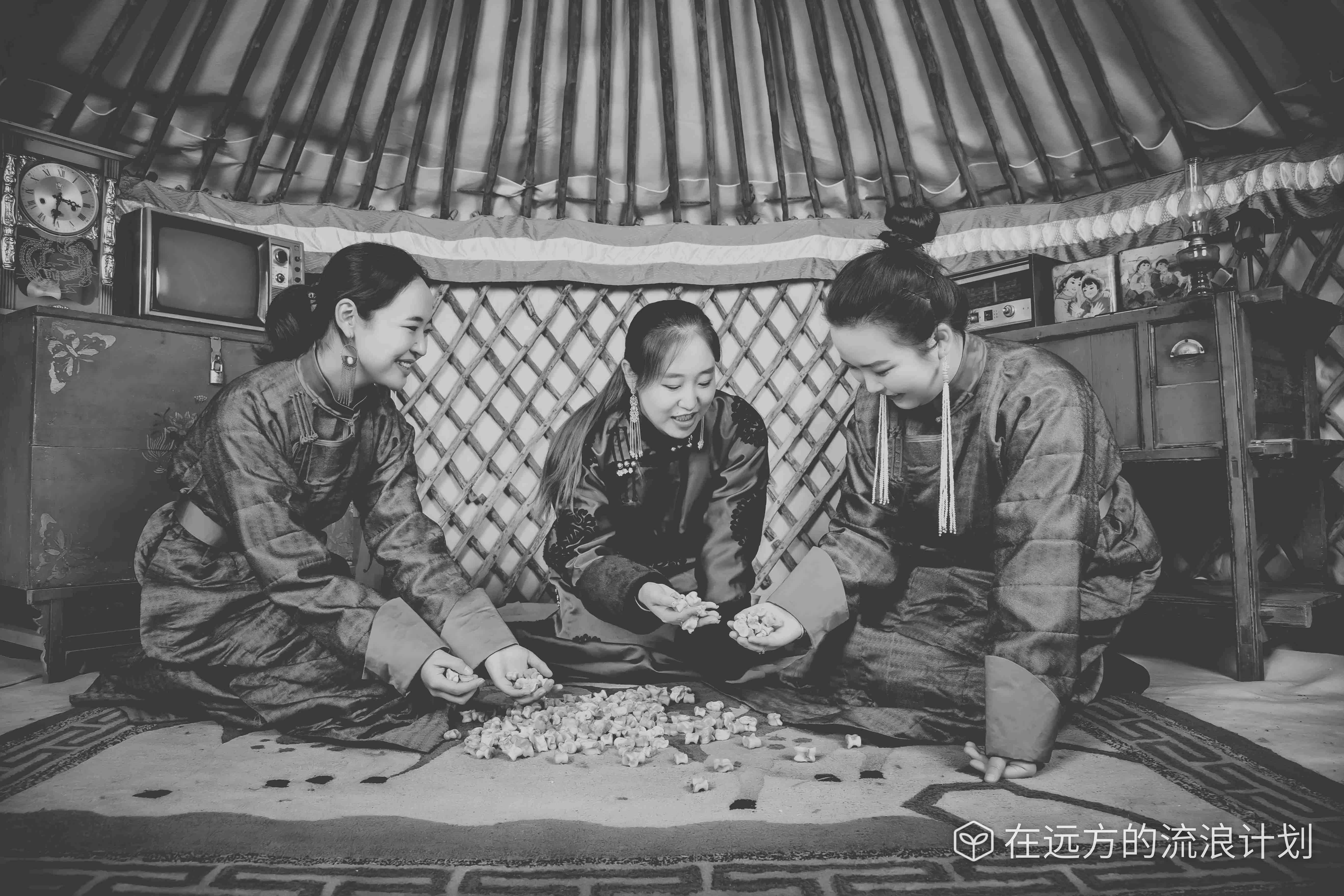 注:毛毯上的颗粒,东北叫“嘎拉哈”,蒙古族叫“沙嘎”,其实是羊的膝盖骨,据说在很久之前是占卜工具,后来演变为北方地区小女孩之间的传统游戏。