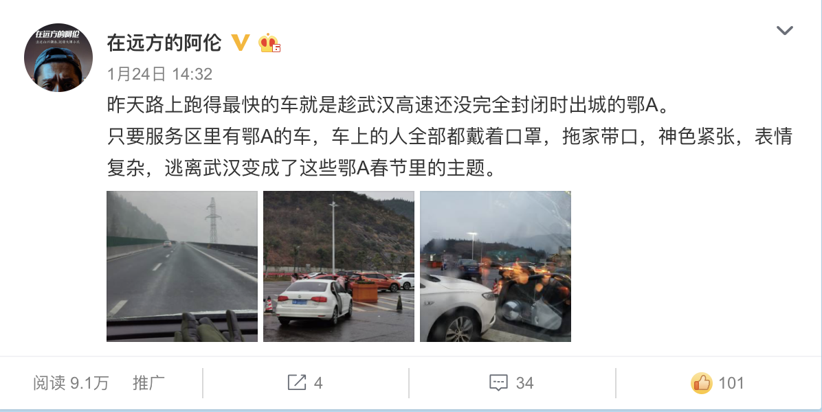 就在我离开之后的第二天,武汉宣布“封城”,网上的舆论开始突然产生质变,网友谩骂的枪口也转向了那些连夜逃离武汉的人;