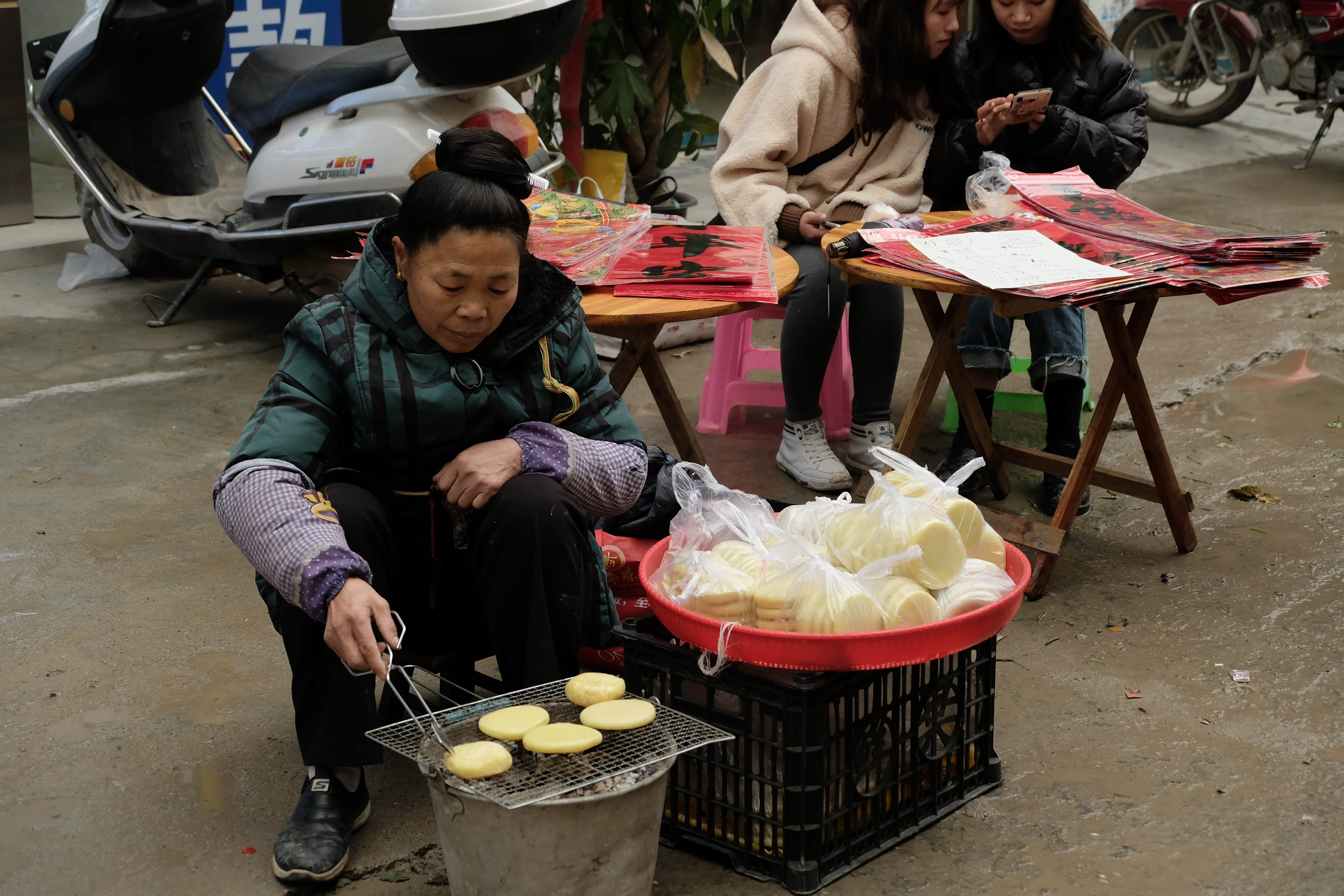 “洛香赶集:剃头/牛瘪火锅/烤糍耙/挑扁担杆/流水席/接亲/腌鱼/染糍耙的栀子果/春联铺,这里是贵州黔东南肇兴......“