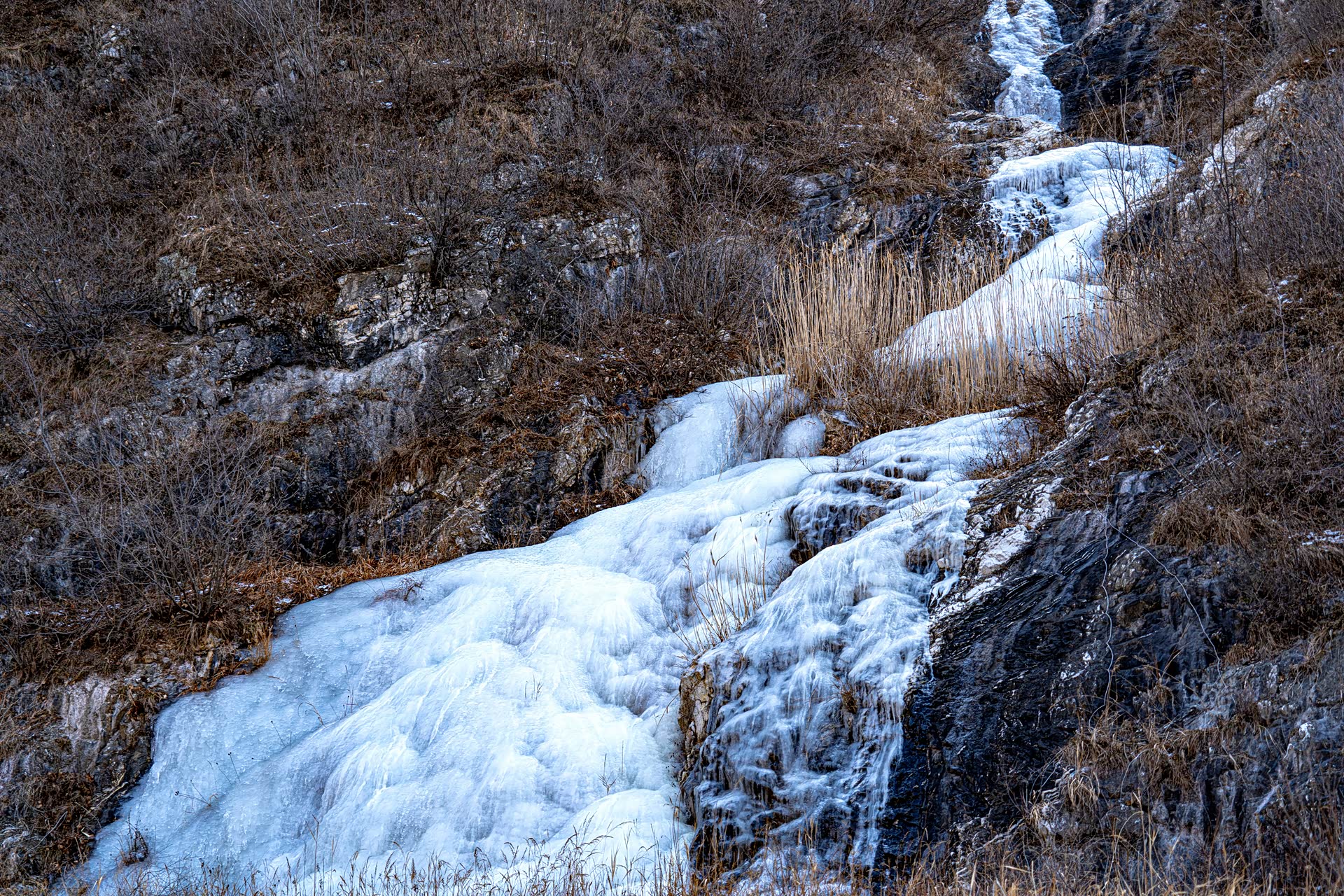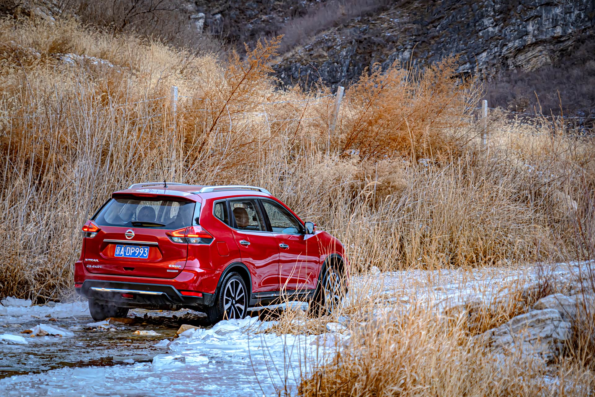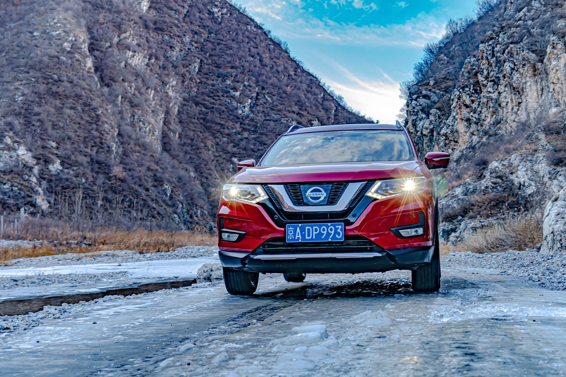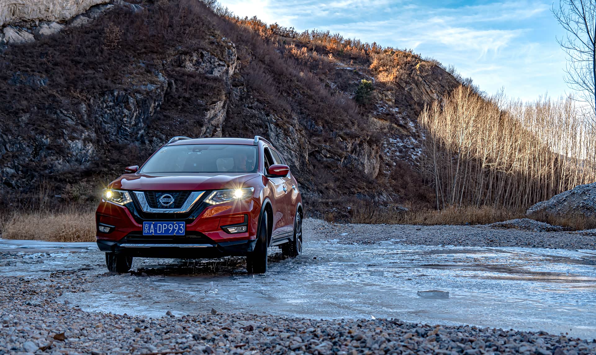 大冰沟在这个初冬很多河面已经解冻,即便是升高改装过的硬派越野车想穿越这里依旧会有很大的风险,所以请感兴趣的小伙伴们尽量在冰冻瓷实了以后再来,另外大冰沟会有一段上山的路程,如果是雪后也不建议往深处穿越。夏天的话难度不大,向奇骏这样带有中差锁的城市SUV也是可以勉强穿越成功的,只是免不了磕磕碰碰或者车里会进些水,去的话也一定要注意安全。