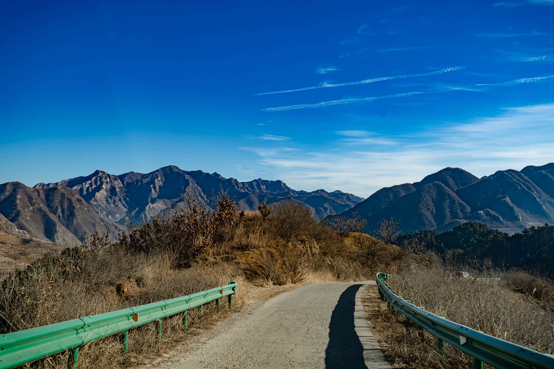 出了县城不远,天空变得更加清澈,远处的群山也从灰蒙蒙的颜色变得更加清晰起来。
