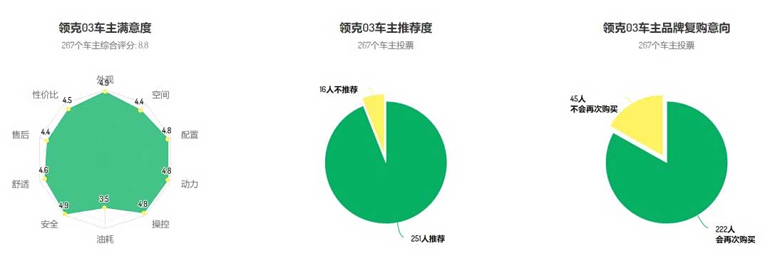 至于领克03,车主的整体满意度和01、02比较接近: